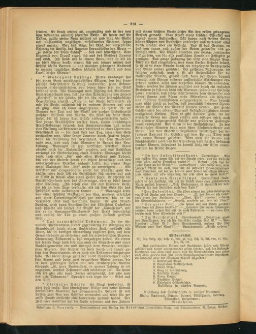 Auslösung des Städterätsels in voriger Nummer: Mainz, Bacharach, Bingen, Honnef, Mühlhausen, Erkelenz, Eschiveiler, Hoigeismar;