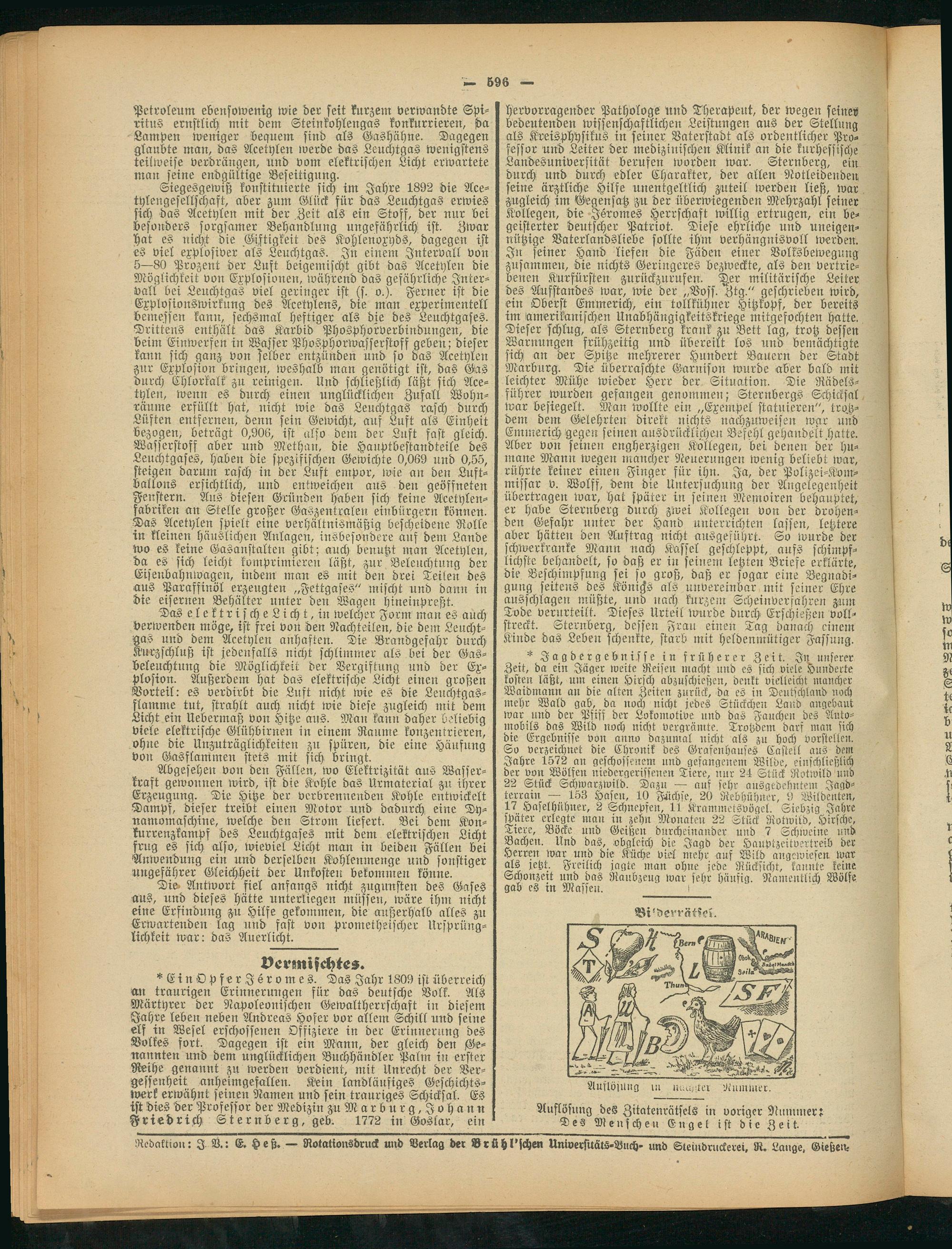 Redaktion: I N.: E. Heß. — Rotationsdruck und Verlag der Brühl'schen Universitäts-Buch- und Steindruckerei, R. Lange, Gießen-