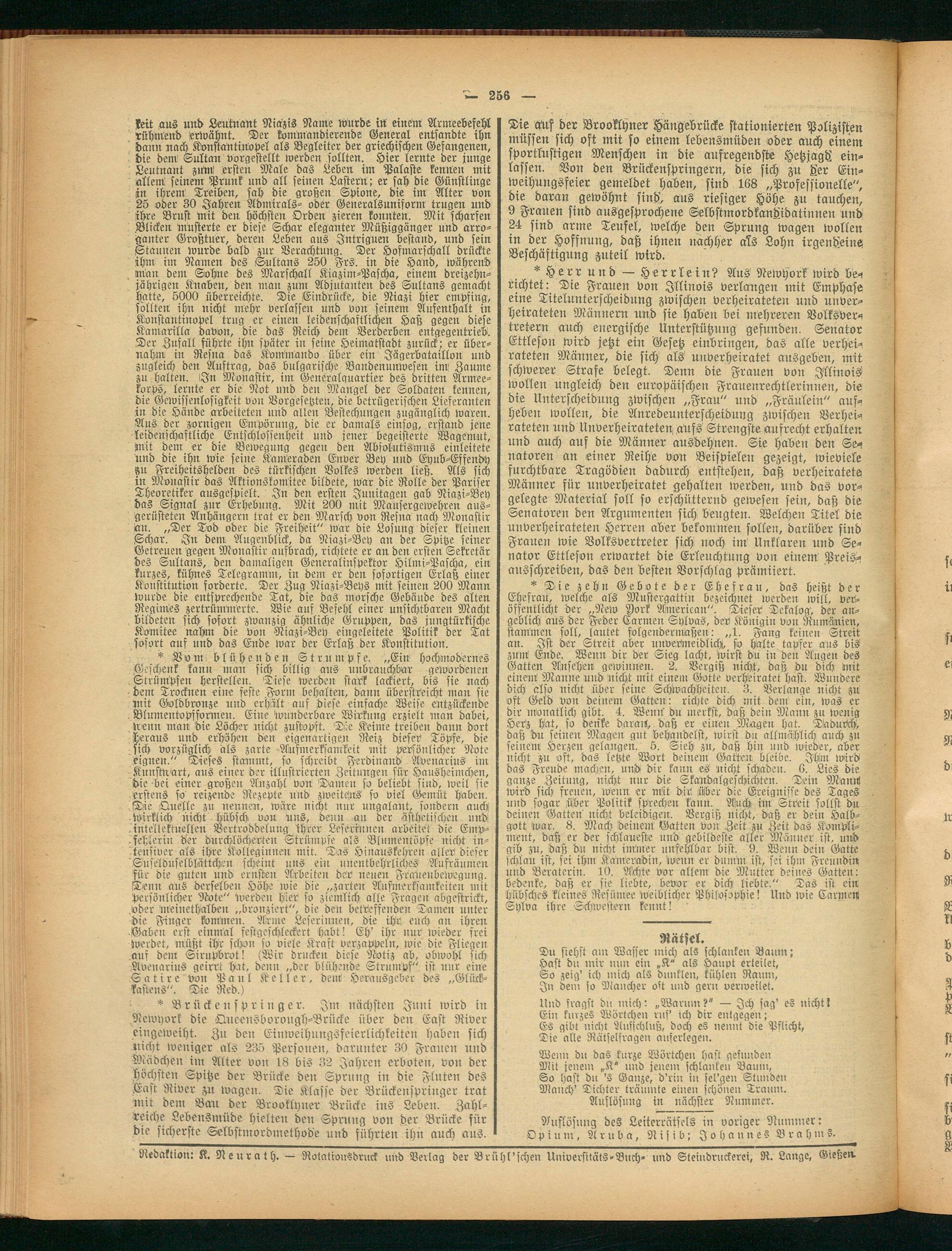 Redaktion: K. Neurath. — Rotationsdruck und Verlag der Brühl'schen Universitäts-Buch- und Steindruckerei, R. Lange, Gießen.