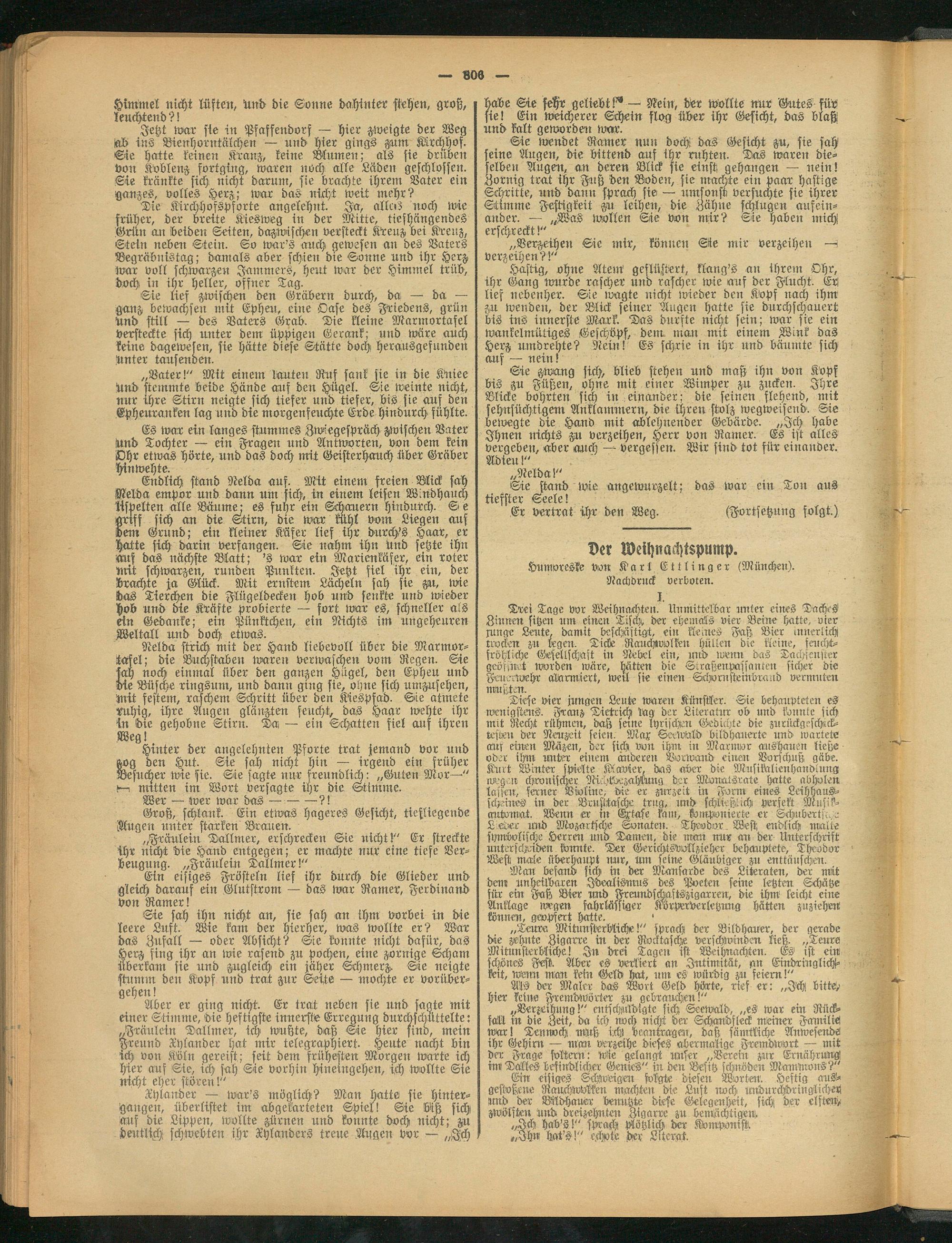 „Teure Mitunsterbliche!" sprach der Bildhauer, der gerade die zehnte Zigarre in der Rocktasche verschwinden ließ. „Teure Mitunsterbliche! In drei Tagen ist Weihnachten. Es ist ein schönes Fest. Mer es verliert an Intimität, pn Eindringlich- keit, wenn man kein Geld hat, nur es würdig zu feiern!"