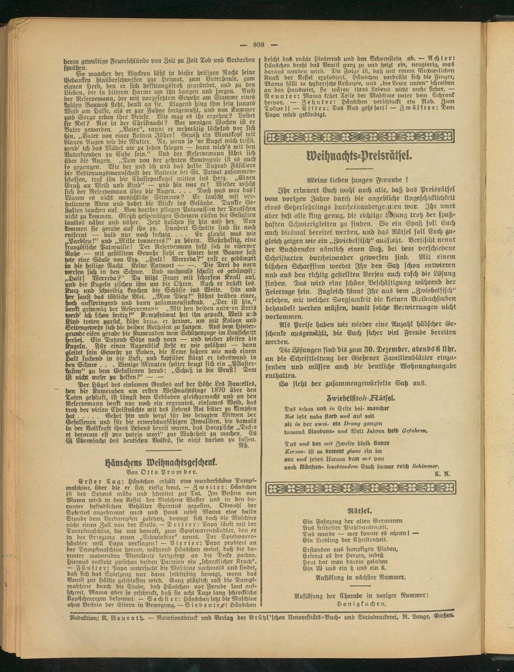 Redaktion: K. Neurath. — Rotationsdruck und Verlag der Brühl'schen Universitäts-Buch- und Steindruckerei, R. Lange, Gieße».