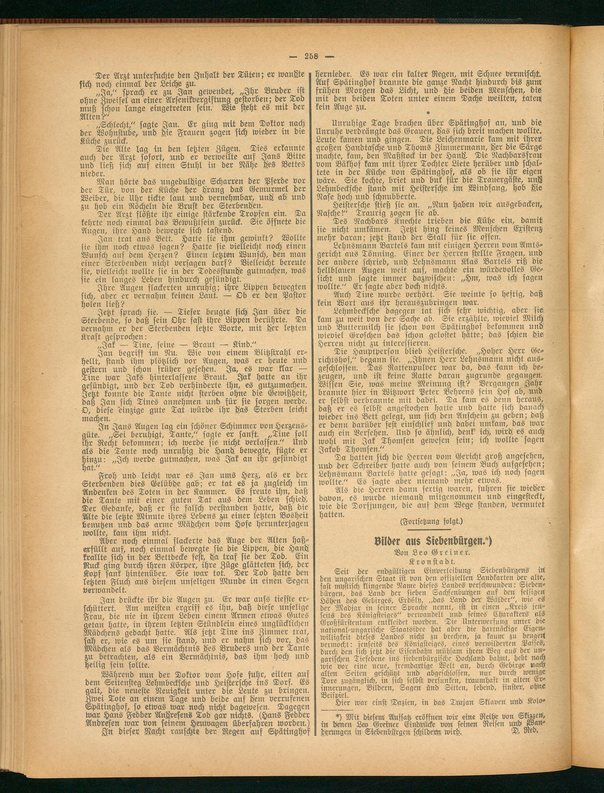 *) Mit diesem! Aufsatz eröffnen wir eine Reihe von Skizzeü, in Lenen Lev Greiner Eindrücke von seinen Reisen und Wan- Lerüngen in Siebenbürgen WldeHr wird, D!, Red'.