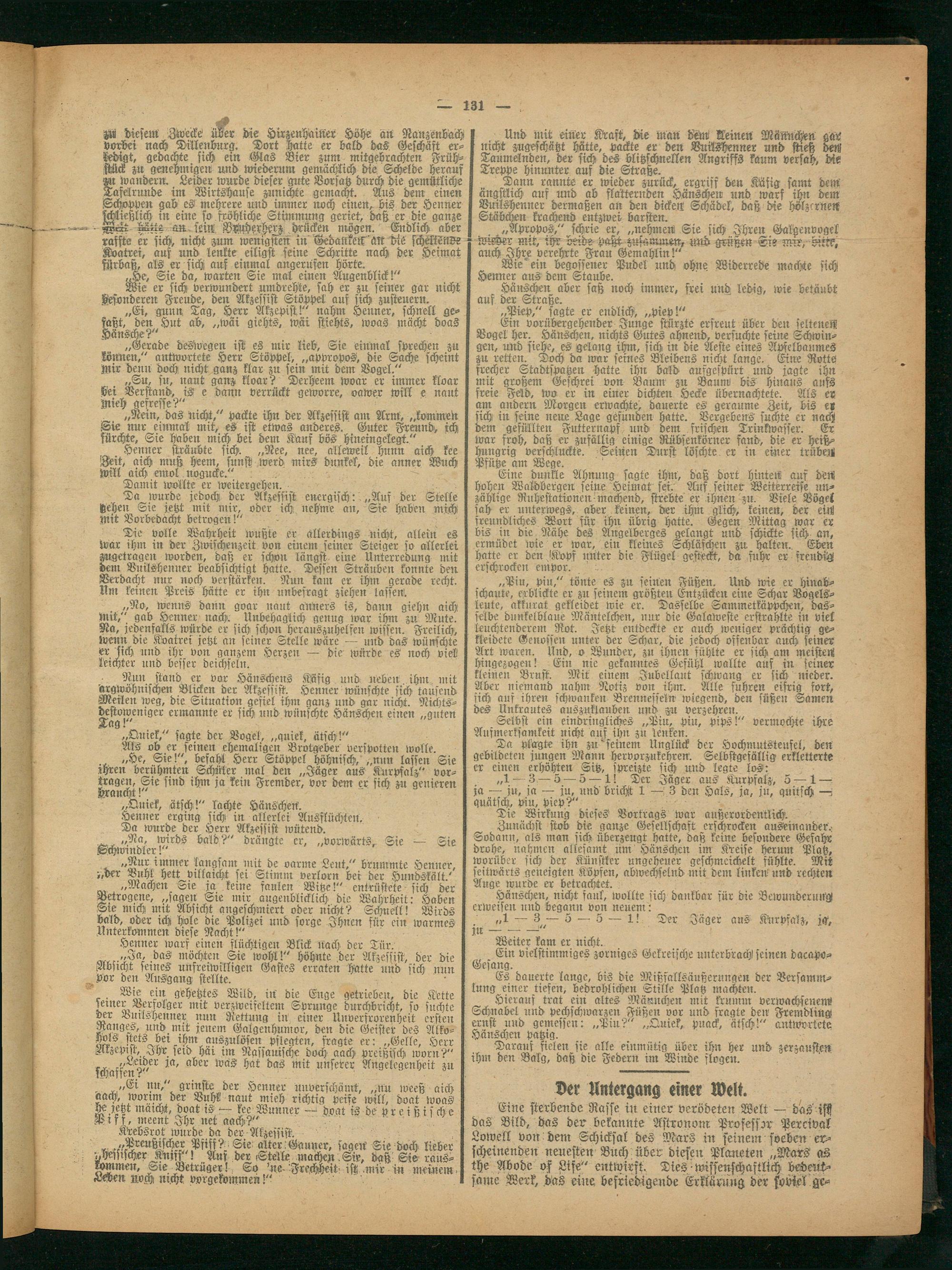 „1 — 3 — 5 — 5 — 1! Der Jäger aus Kurpfalz, 5—1 — ja — ju, ja — ju, und bricht 1 — 3 den Hals, ja, ju, quitsch —; quätsch, piu, piep?"