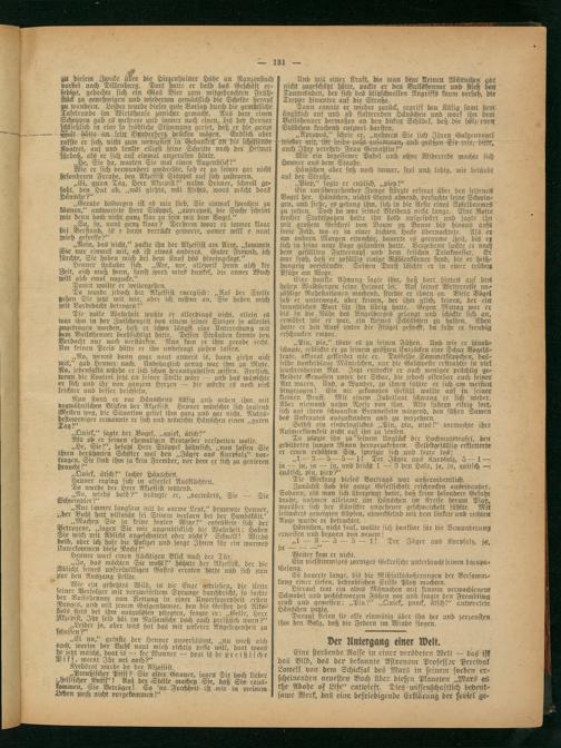 . Wie ein gehetztes Wild, ist die Enge getrieben, die Kette seiner Verfolger mit verzweifeltem Sprunge durchbricht, so suchte der Vuilshenner nun Rettung ist einer Unverfrorenheit ersten manges, und mit jenem Galgenhumor, den die Geister des Alkö- stols stets bei ihm auszulösen pflegten, fragte er: „Gelle, Herr Akzepist, ^hr. seid häi im Nassauische doch aach preißisch worn?" la, aber was hat das mit unserer Angelegenheit zu 11t-ii r