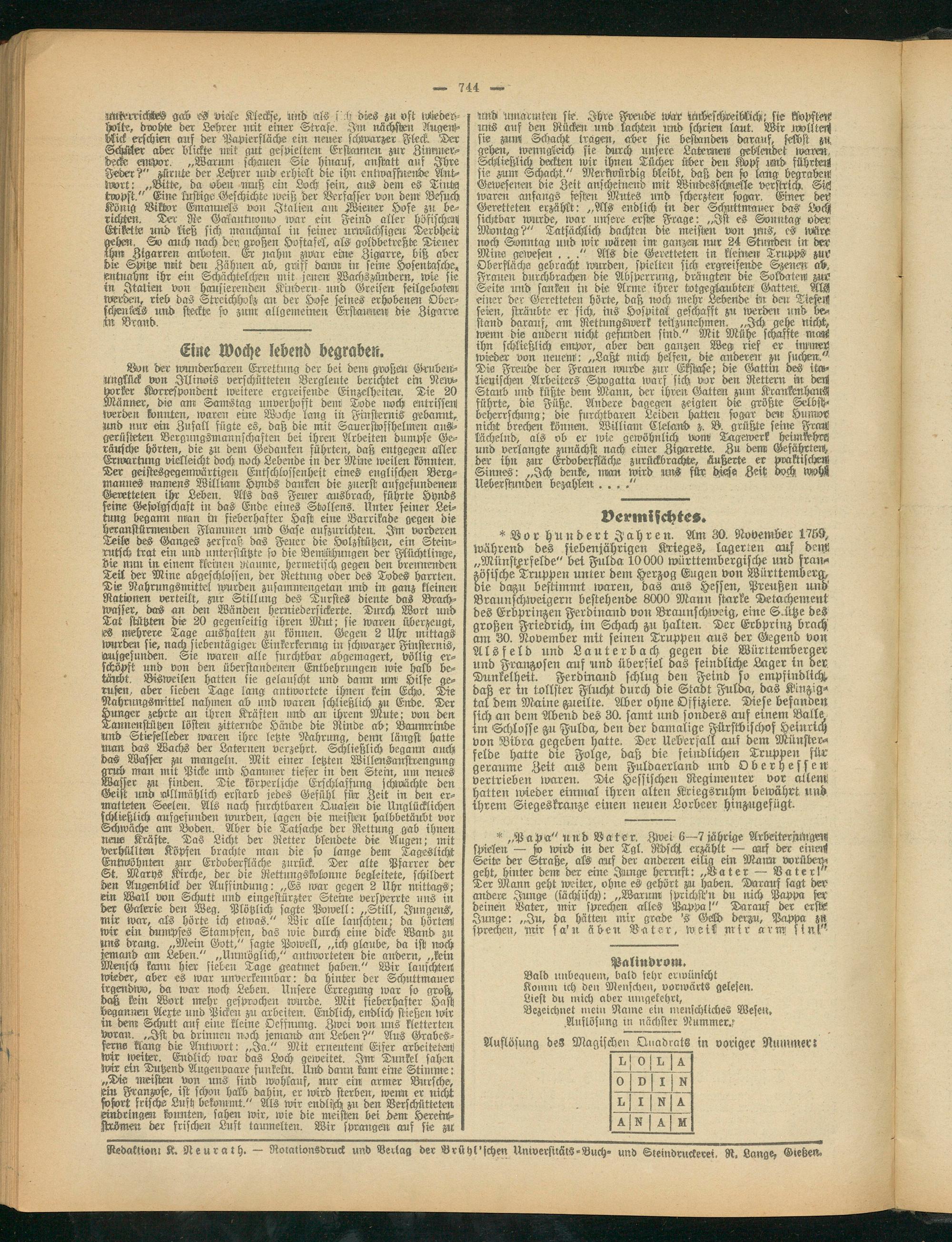 Redaktioni K. Neurath. — Rotationsdruck und Verlag der Brühl'fchen Universitäts-Buch- und Sreindruckerei. R. Lange. Sieben,