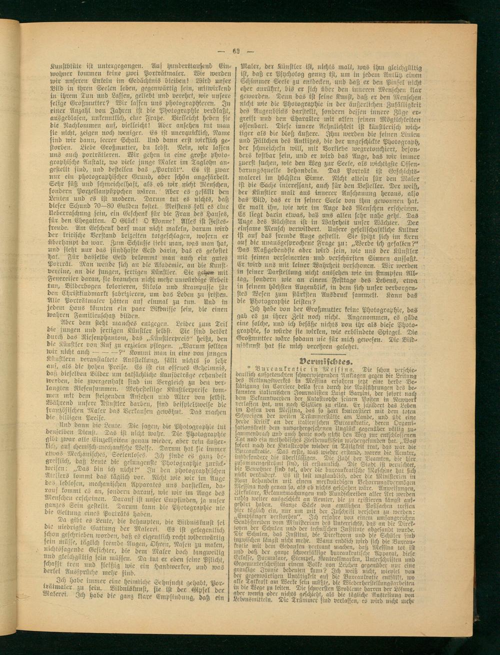 Ich habe von der Großmutter keine Photographie, das gab es zu ihrer Zeit noch nicht. Angenommen, es gäbe eine solche, und ich besäße nichts von ihr als diese Photographie, so Erde sie wirken, wie erblindete Spiegel. Ma Großmutter wäre sodann nie für mich gewesen. Tie Bild- nisknnst hat sie mich verehren gelehrt.