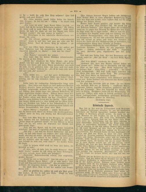 Von Zeit zu Zeit wird die Oeffentlichkeit durch BerbrechÄ oder abnorme Handlungen alarmiert, die von den betreffenden Individuen, als Ausfluß hypnotischer Zustände bezeichnet oder zu solchen in Beziehung gebracht werden. So wurde vor wenigen Monaten ein Fall berichtet, der sich in den Vereinigten Staaten zugetragen hatte. Ein durch seine Frömmigkeit und Milde bekannter Reverend schoß vor dem Altäre einen Mann' nieder unter der Anschuldigung, daß ihn dieser jahrelang in eurem hypnotischen Zwange hielte und ihn Dinge wider seinen Willen zu unternehmen veranlaßte. Ilm diesem fürchterlichen Druck zu entgehen, fei ihni kein anderer Ausweg übrig geblieben als sich seines Peinigers auf diese Weise zu entledigen. Hier lag kein hypnotischer Instand vor, sondern ein Beeinfluss s u n g s w a h n._ Der Reverend konnte sich seine Handlungen nicht ein «reit und schob das Motiv zu ihnen auf einen anderen! Menschen ab. Derartige wahnhafte Vorstellungen sind bei Geisteskranken recht häufig. Ebendorthin gehört auch die tragikomische Geschichte, welche kürzlich an den belgischen Gerichten zum Austrag gebracht wurde. Es handelte sich um ein junges Mädchen, jsst, einen Musiker verliebt war und ihn jahraus, jahrein atif Schritt und Tritt mit ihren Anträgen belästigte. Sowie der Musiker seinen Wohnort wechselte, und er tat dies notgedrungen, olgte ihm das Mädchen. Es behauptete gleichfalls, unter hypnotischem Zwange, der von dem Manne ausginge, zu handeln, -vcan versuchte eine eigenartige_ „Gegenhypnose", man verprü- gette den jünger der heiligen Cäcilie, aber auch dies war vergeblich.