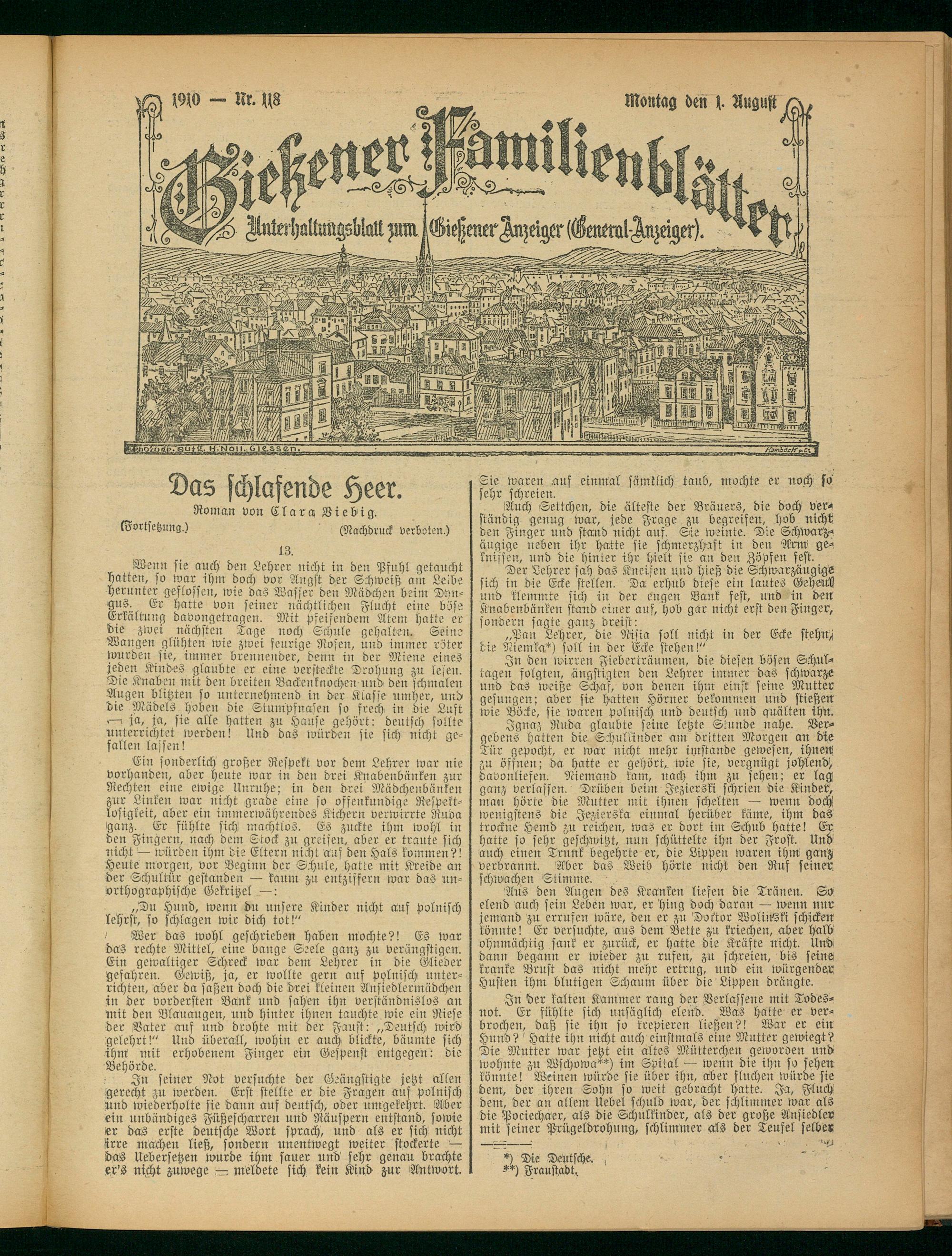 In den wirren Fieberträumen, die diesen bösen Schultagen folgten, ängstigten den Lehrer immer das schwarze und das Weiße Schaf, von denen ihm einst seine Mutter gesungen; aber sie hatten Hörner bekommen und stießen itüe Böcke, sie waren polnisch und deutsch und quälten ihü.