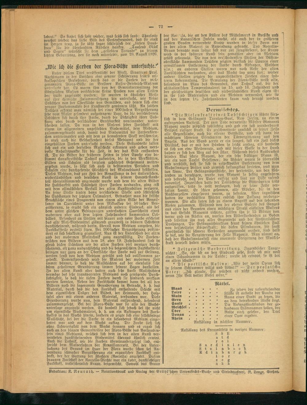 Redaktion: K, Neurath. — Rotationsdruck und Verlag der Brühl'scheu Universttäts-Buch- und Steindruckerci, R. Lange, Gießen.