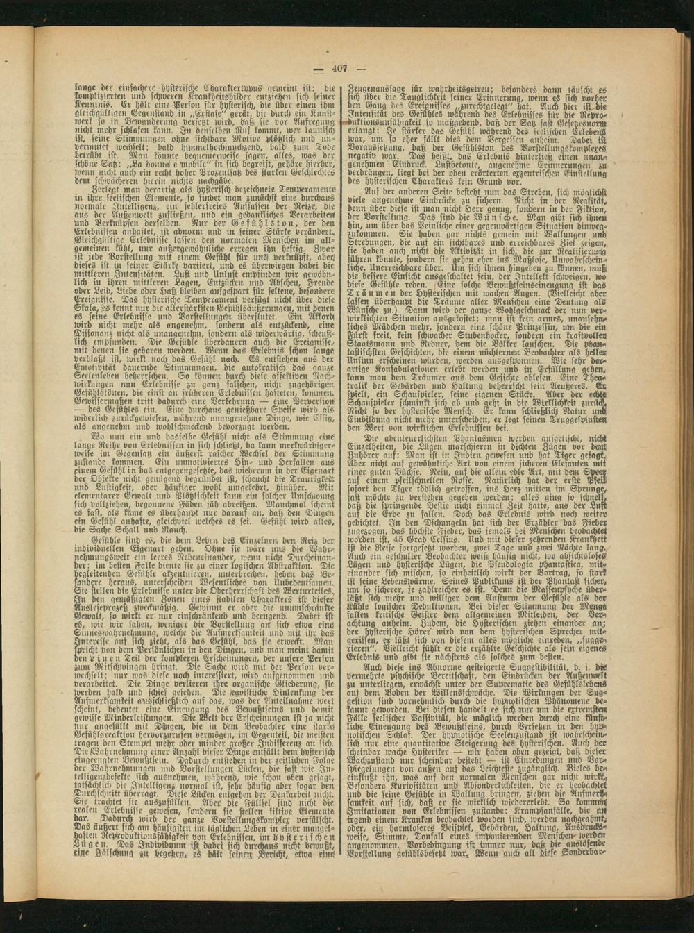 Die abenteuerlichsten Phantasmen werden aufgetischt, nicht Einzelheiten, die Lügen marschieren in dichten Zügen vor dAst Zuhörer auf: Man ist in Indien gewesen und hat Tiger getagt; Aber nicht auf gewöhnliche Art von einem sicheren Elefanten mit einer guten Büchse. Nein, auf die allein edle Art, mit dem auf einem pfeilschnellen Rosse. Natürlich hat der erste PW sofort den Tiger tödlich getroffen, ins Herz mitten im Sprunge, ast möchte zu verstehen gegeben werden: alles ging so schnell,, daß die springende Bestie nicht einmal Zeit hatte, ans der Luft auf die Erde zu fallen. Doch das Erlebnis wird noch weiter gedichtet. In den Dschungeln hat sich der Erzähler das Fieber zngezogeu, das höchste Fieber, das jemals Bei Menschen beobachtet worden ist, 45 Grad Celsius. Und mit dieser zehrenden Krankheit ist die Reise fortgesetzt worden, zwei Tage und zwei Nachte lang. Auch ein geschulter Beobachter weiß häufig nicht, wo absichtsloses Lügen und hysterische Lügen, die Pseudologia phantastica, miteinander sich mischen, so einheitlich wirkt der Vortrag, so stark ist feine Lebenswärme. Seines Publikums ist der Phantast sicher, um so sicherer, je zahlreicher es ist. 'Denn die Massenpsyche überläßt sich mehr und williger dem Ansturm der Geftlhle als bet Kühle logischer Deduktionen. Bei biefer Stimmung der Mengs fallen kritische Geister dem allgemeinen Mitleiden, der Vev-, achtung anheim. Zudem, die Hysterischen ziehen einander an.; der hysterische Hörer" wird von dem hysterischen Sprecher mit» geriffelt, er läßt sich von diesem alles mögliche einreden, „suggerieren". Vielleicht fühlt er die erzählte Geschichte als fein eigenes Erlebnis und gibt sie nächstens als solches zum besten.