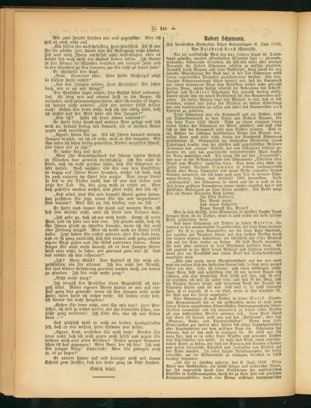 Als die musikalische Welt vor vier Jahren seines 50. Todestages gedachte, wurden allenthalben Stimmen laut — zürnende, mahnende, bedauernde Stiunncn, die sich mit mehr oder weniger Autorität für Robert Schumann erheben zu müssen glaubten/ Zunächst durch Wagner und seine Nachfolger, dann durch die neu erweckte Begeisterung für Bach war in der Tat Schumann nebst seinen romantischen Freunden zurückgedrängt worden. Ein feinsinniger SchumannsreunÜ führte damals aus, daß der Komponist auf einem besonderen Wege dem Publikrim wieder nahe gebracht werden könne, indem diesem nämlich die Bedeutung des Schriftstellers und Dichters Schumann klar gemacht werden müsse'.: Damit würde ihm ein neues Verständnis für den Komponisten aufgehen. In diesen Worten liegt viel Wahres, so viel, daß es sich verlohnt, einmal das Leben des Meisters an diesem Gedenktage! vor uns vorüberziehcn zu lassen und dabei des Komponisten u n d Dichters zu gedenken.