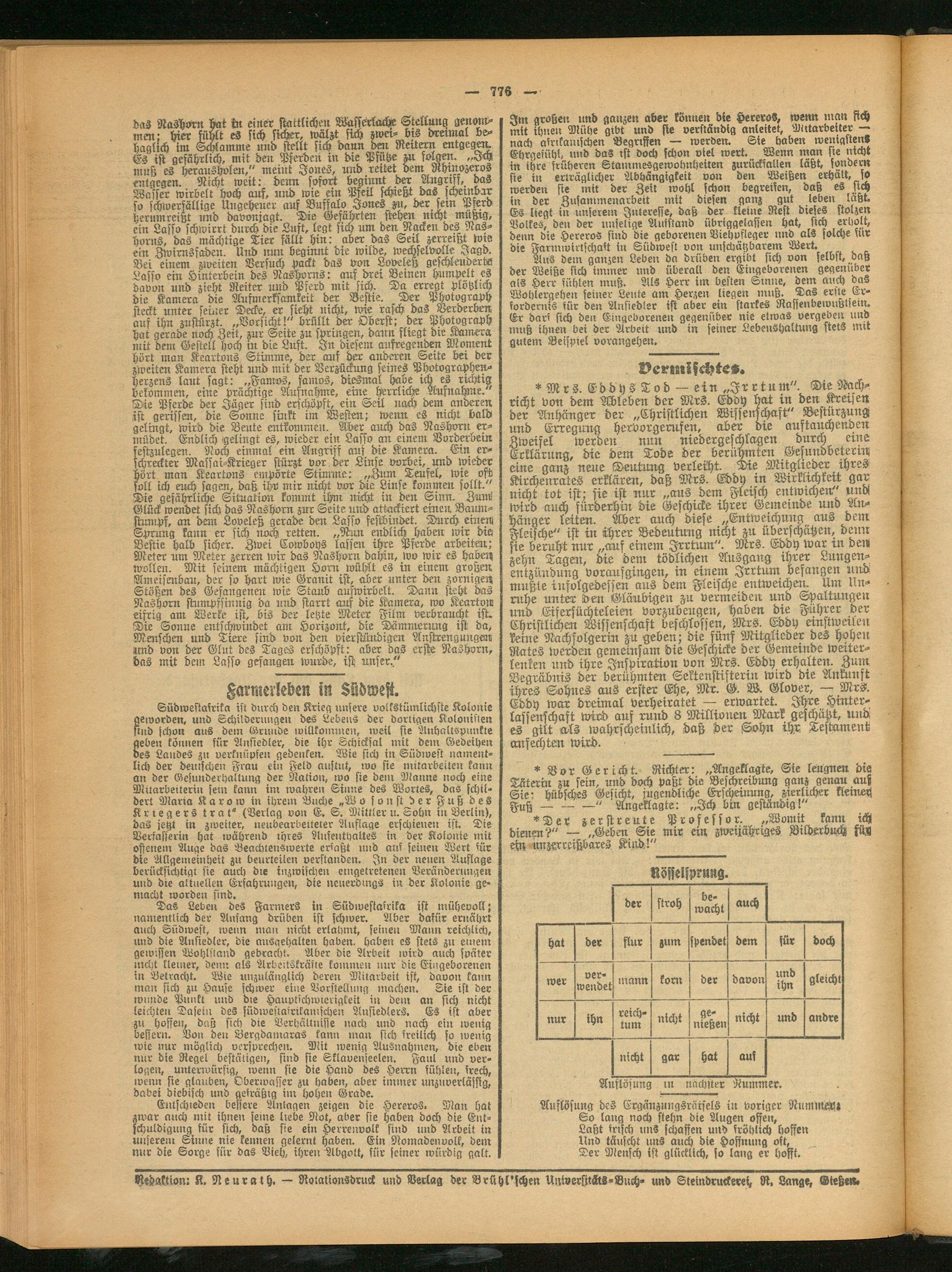 Redaktion: K. Neurath. — Rotationsdruck und Verlag der Brühl'schen Universitäts-Buch- und Steindruckereh R. Lange, Dietz««»