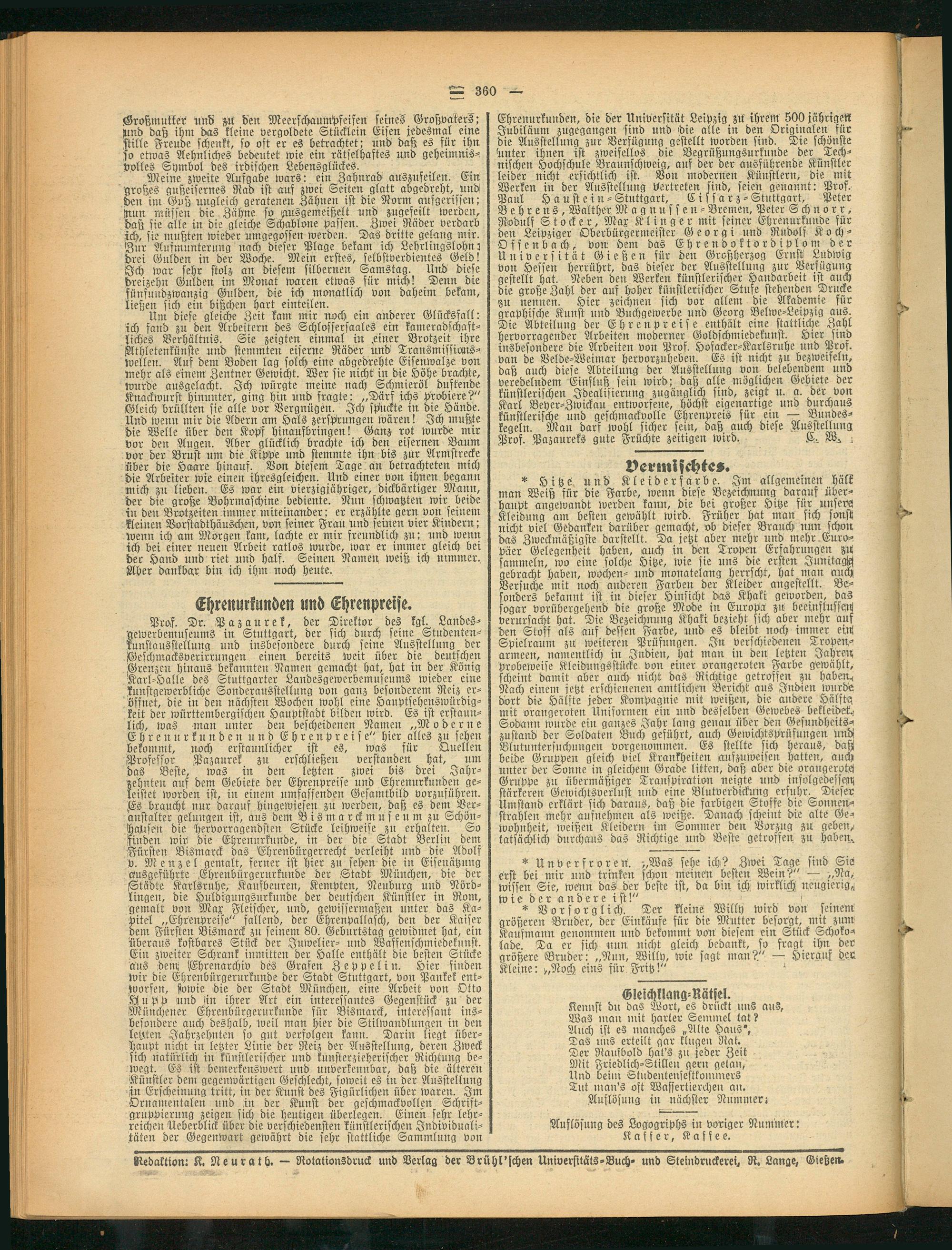 Siebaktion: K. Neurath. — Rotationsdruck unb Verlag der Brühl'schen Universitäts-Buch- unb Steindruckerei, R. Lange, Gießen.