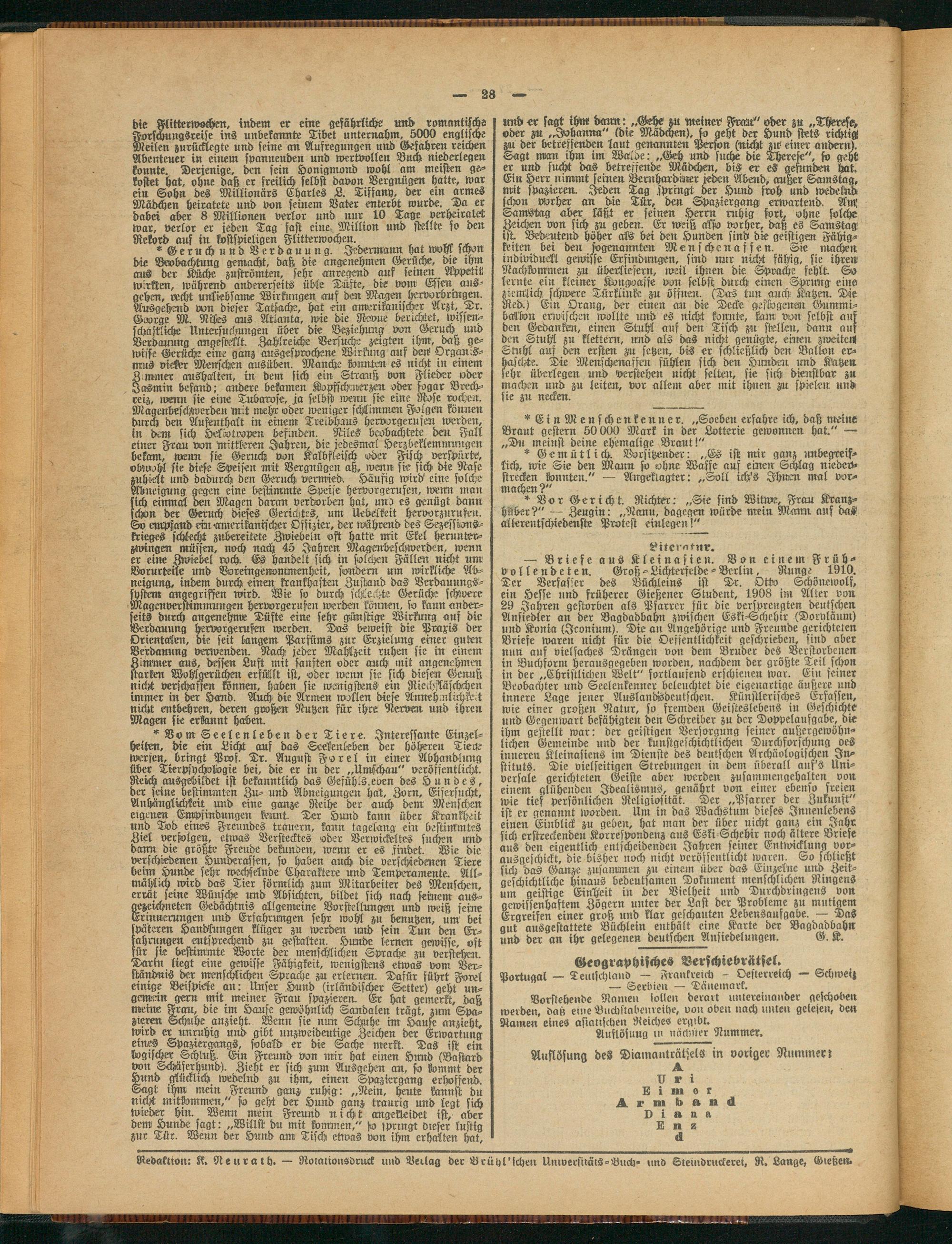 Redaktton: K. Neurath. — Rotationsdruck und Verlag der Brühl'ichen Universitäts-Buch» und Stemdruckeret, R. Lange, Gteßen.