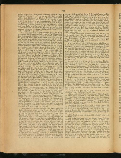Man trat auch ohne ihn in die Verhandlung ein. Vergleichsversuche, die der Vorsitzende anregte, wurden üb- gelehnt. Nun verlasen die Anwälte die Anträge der Klage und die Klagebeantwortung; dann erhielt Graf Eldringen das Wort.