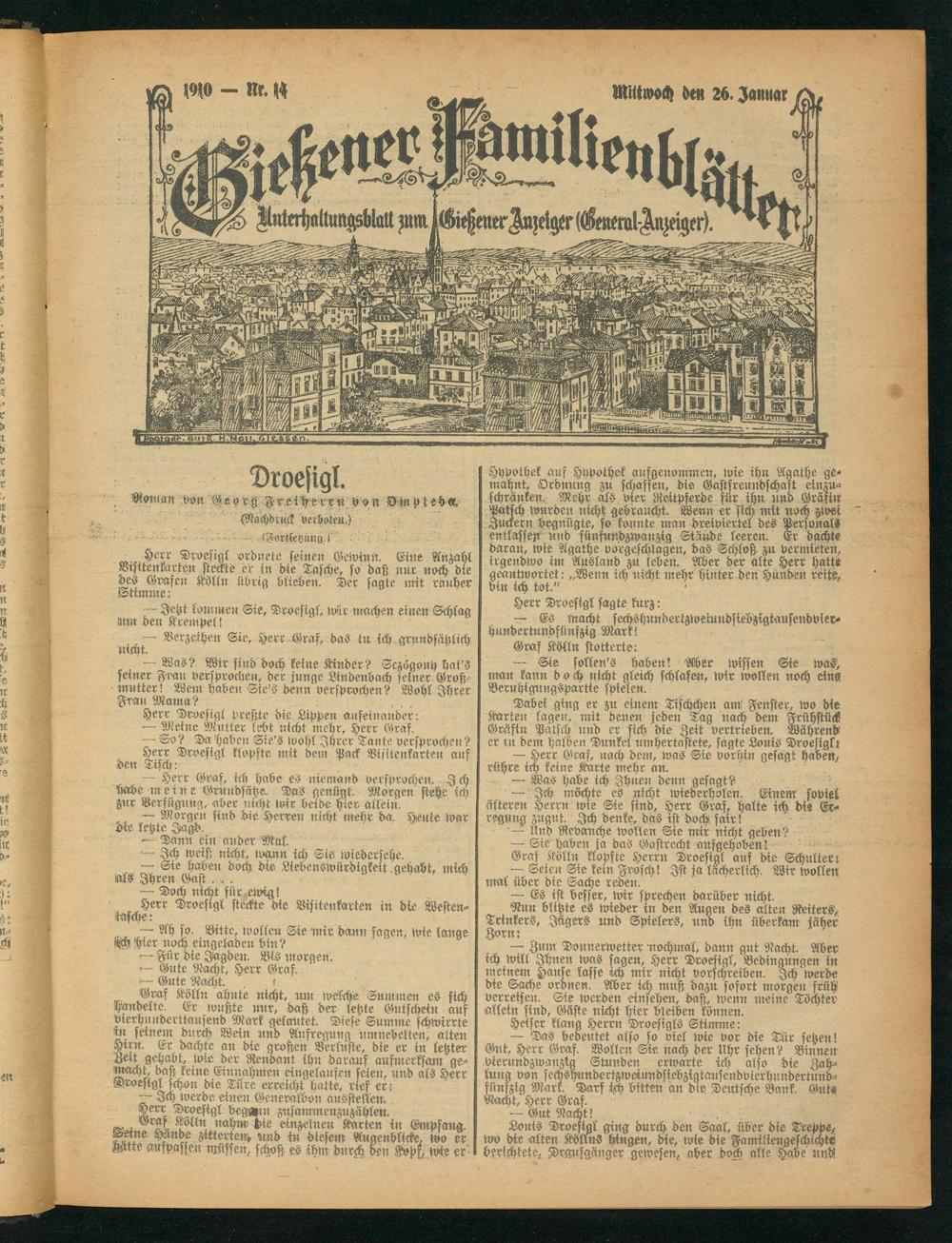 Herr Droesigl ordnete seinen Gewinn. Eine Anzahl Vtslterrkarten steckte er in die Tasche, so daß mir noch die des Grafen. Kölln übrig blieben. Der sagte mit ranher Stirnrne: