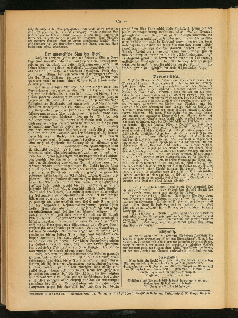 Redaktion: R. Neurath. — Rotationsdruck und Verlag der Brühl'schen Universitäts-Buch« und Steindruckereh R. Lange, Gießen»