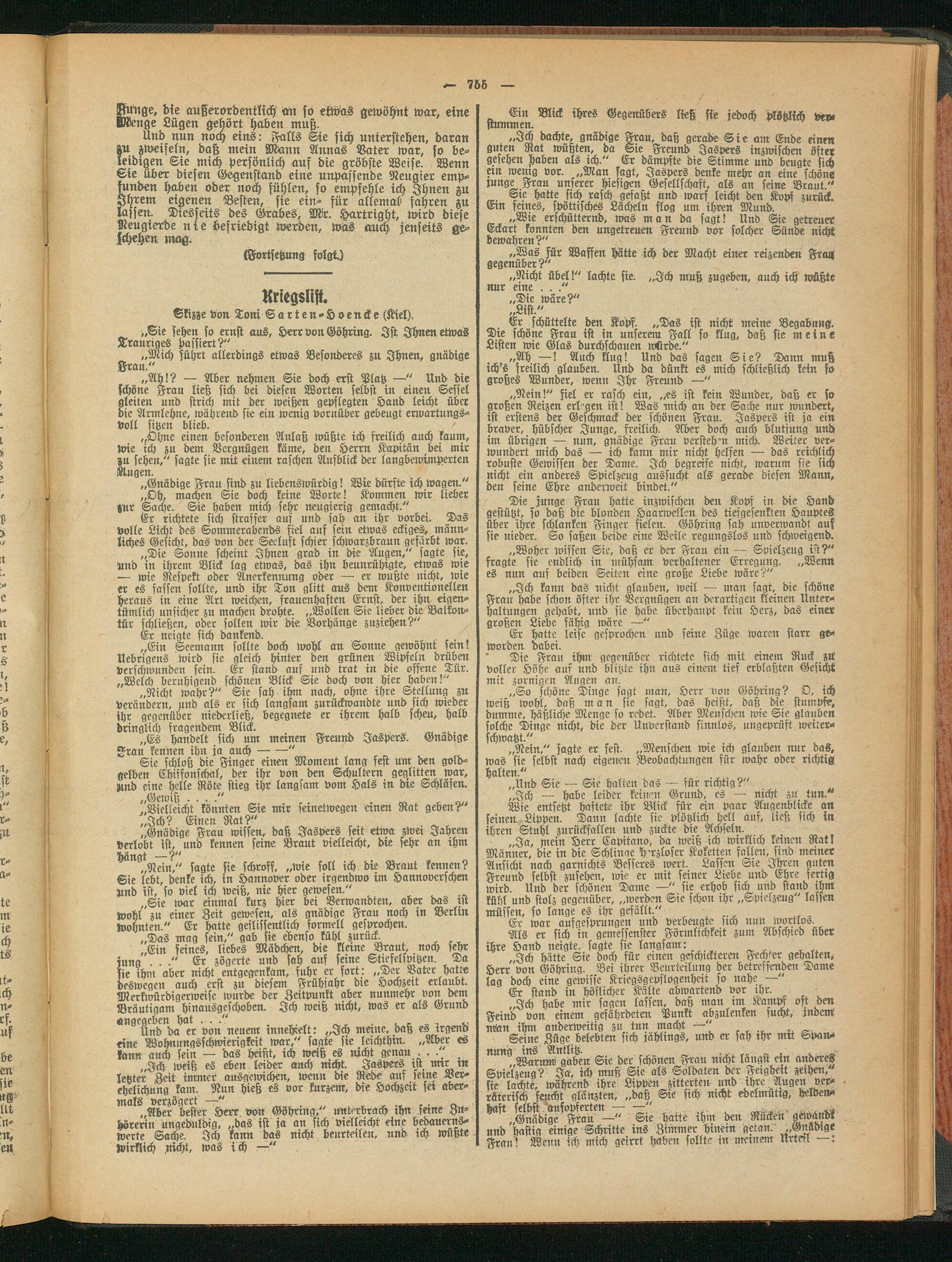 „Ohne einen besonderen Anlaß wüßte ich freilich auch kaum, wie ich zu dem Vergnügen käme, den Herrn Kapitän hei mir zu sehen," sagte sie mit einem raschen Aufblick der laugbewimperten Äugen.