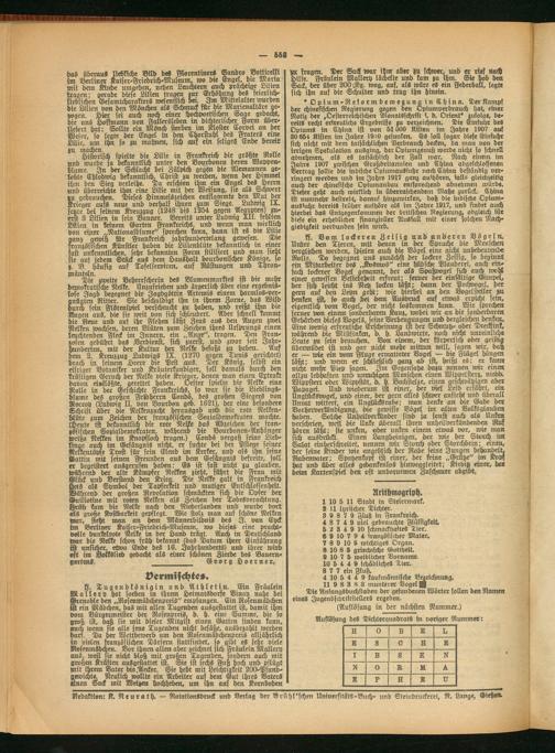 Redaktion: K. Neurath. — Rotationsdruck und Verlag der Brühl'schen Universttäts-Bnch- und Steindruckerei, R. Sange, Gießen.