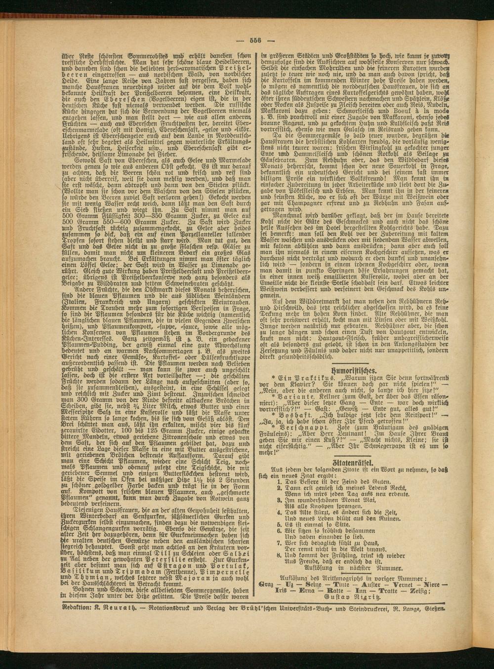 Redaktion: K. Neurath. — Rotationsdruck und Verlag der Brühl'schen Universitäts-Buch- und Steindruckerei, R. Lange, Gießen.