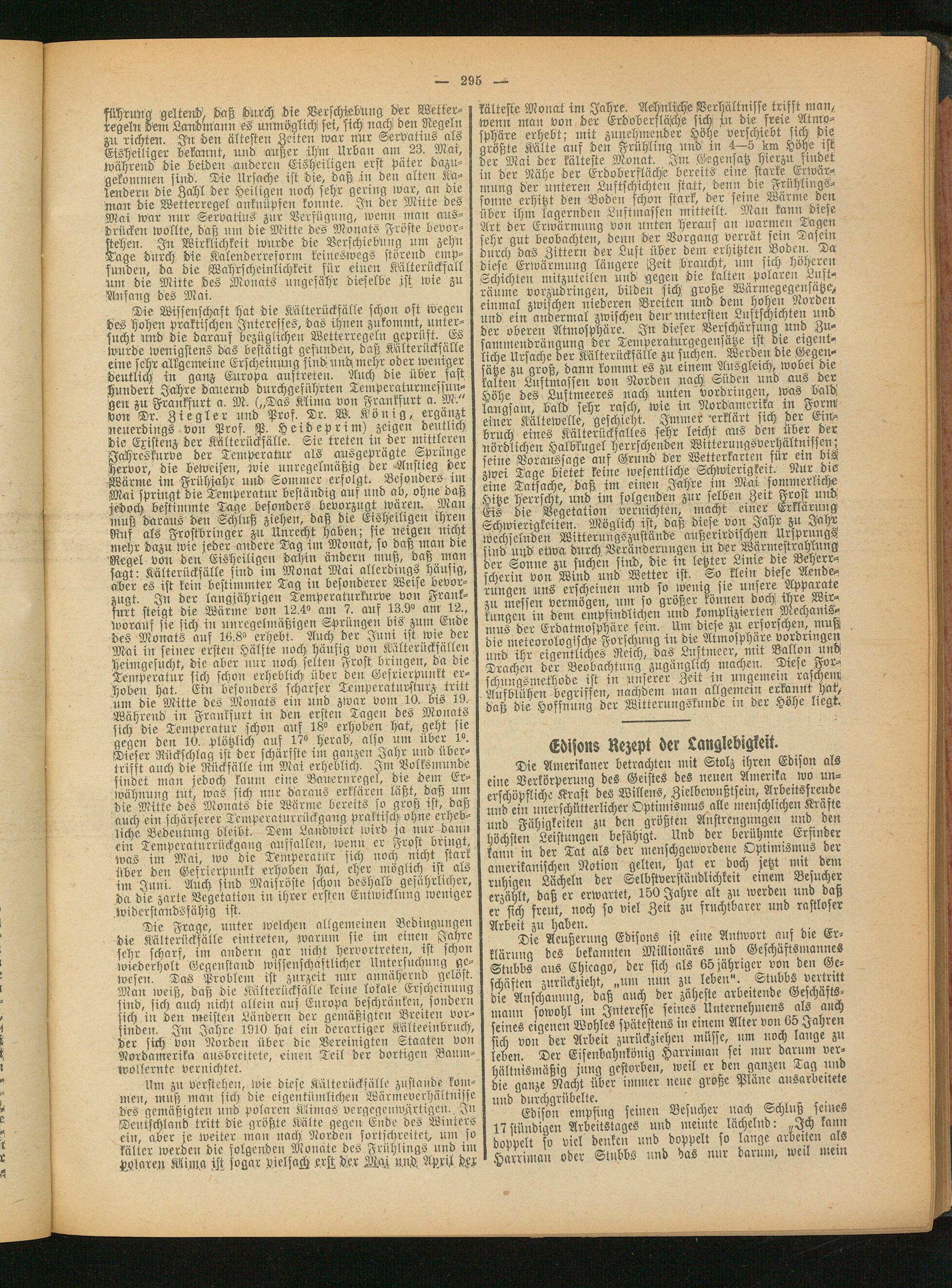 des gemäßigten und polaren Klimas vergegcnwZrtigeu. ytt I Cdison empfing seinen Besucher nach Schluß feines Deutschland tritt die größte Kälte gegen Ende des Winters I Arbeitstages und meinte lächelnd: „Ich kann