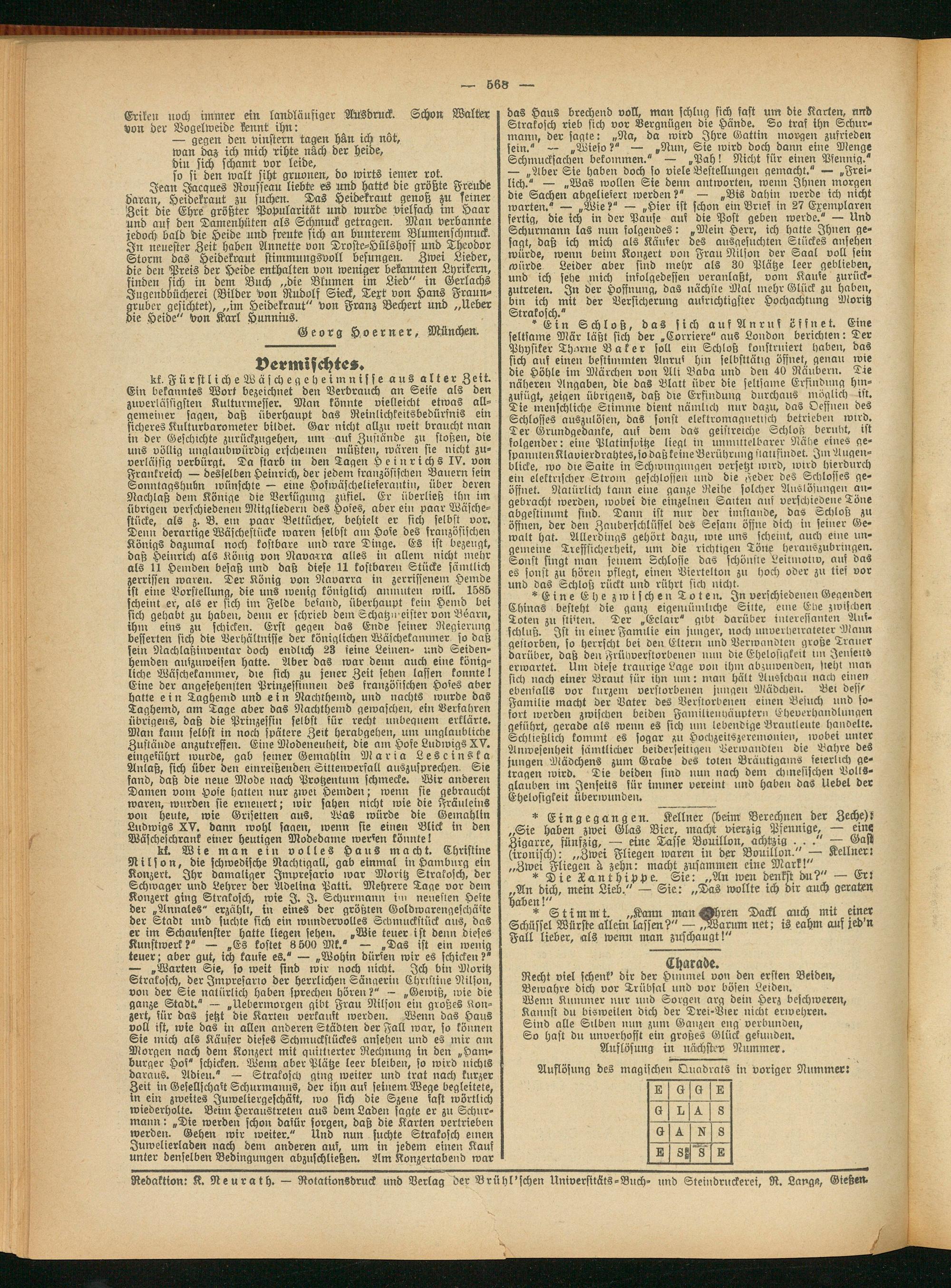 Redaktion: K. Neurath. — Rotationsdruck und Verlag der Brühl'schen Universitäts-Buch- und Steindruckerei, R. Lange, Gieße».