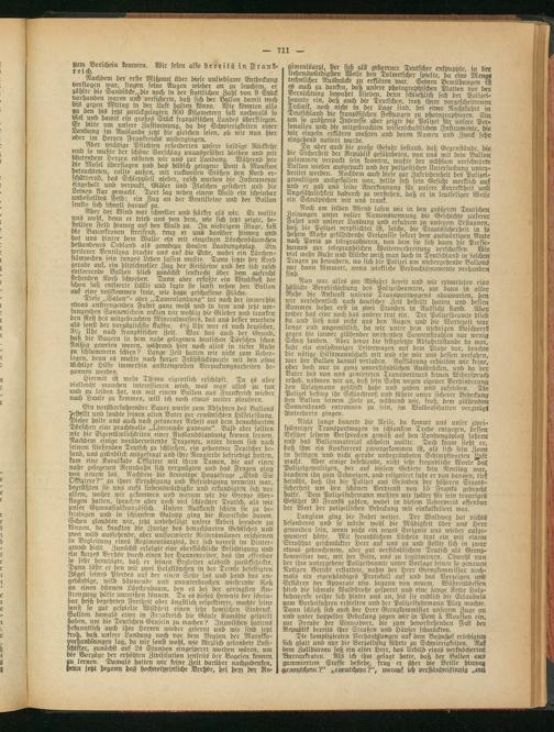 Langsam ging die Fahrt weiter. Der Waldweg bot nichts besonderes und so würde wohl die Müdigkeit über uns Herd geworden sein, wenn nicht ein neues Ereignis uns wieder aufge- muntert hätte. Mit freundlichem Lächeln trat ein mit einem1 Strohhut geschmückter Herr auf uns zu urtb stellte sich in zwar etwas gebrochenein, aber gut verständlichem Deutsch als Grenzt- kommissar vor, mit der Bitte, uns zu legitimieren. Obwohl nun der ihm untergebene Polizeibeamte unter Vorlage feiner so genaues Notizen Bericht erstattete, nahm der Herr Grenzkommissar nochmals ein eigenhändiges Protokoll auf und das Vorzeigen und Erklären der Apparate usw. begann von neuem. Währenddessen blieb die schmale Waldstraße gesperrt und eine lange Kette Holzfuhrwerke reihte sich hinter uns an, bis sie endlich die Erlaubnis zum Vorbeifahreu erhielten und der Polizeifuhrmann Platz Machte, Dann schloß sich auch der Herr Grenzkommisfar unserem Zuge an und Unter doppelter Bedeckung zogen wir in Pont ä Monsfon ein, zur Freude der Einwohner, die zunr bevorstehenden Fest der Republik bereits ihre Straßen und Häuser schmückten.