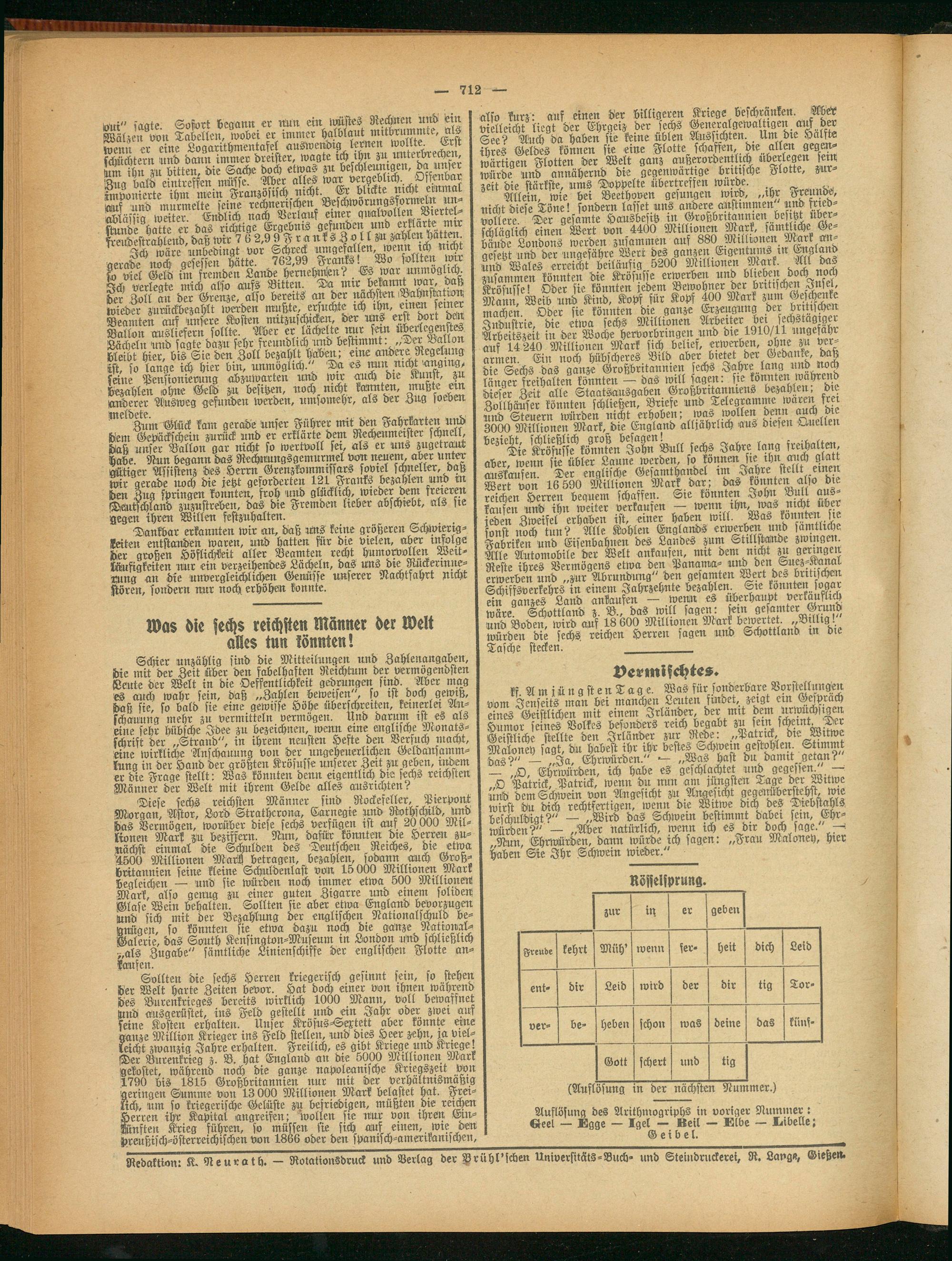 Redaktion: K. Neurath. - Rotationsdruck und Verlag der Nrühl'scben Universitäts-Buch- und Steiiidruckerei, R. Lange, Gieße».