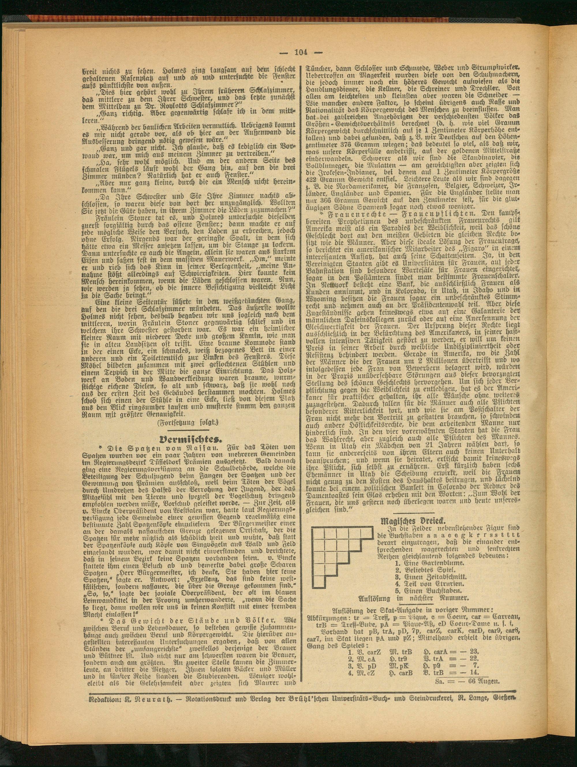 Redaktion: K, Neurath. — Rotationsdruck und Vertag der Brühl'fchen Universitäts-Buch- und Steindruckerei, R. Lange, Gieße»