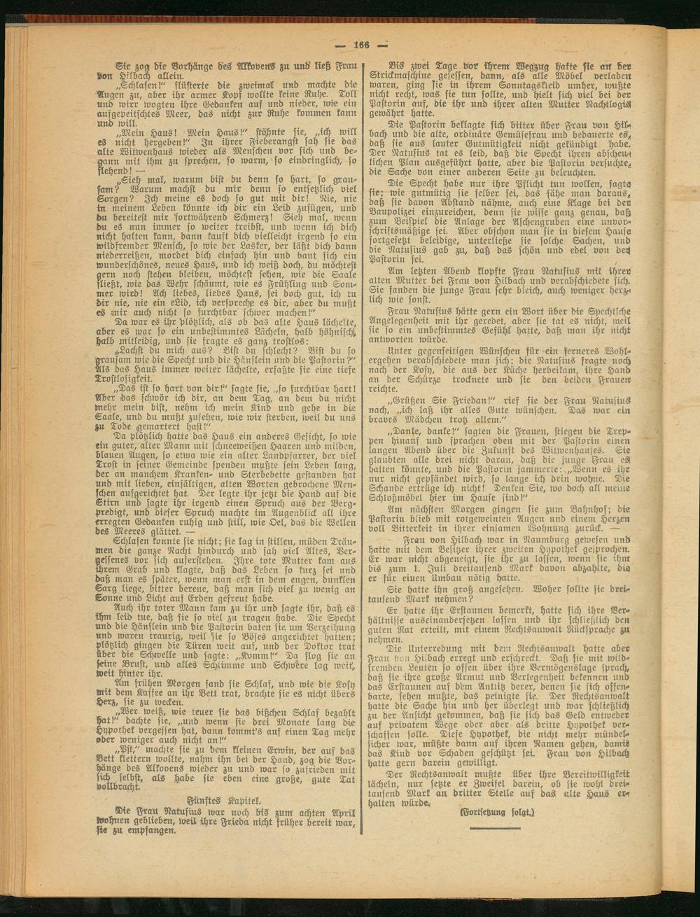 „Wer weiß, wie teuer sie das bißchen Schlaf bezahlt hat!" dachte sie, „und wenn sie drei Monate lang die Hypothek vergessen hat, dann kommt's aus einen Tag mehr »der weniger auch nicht an!"