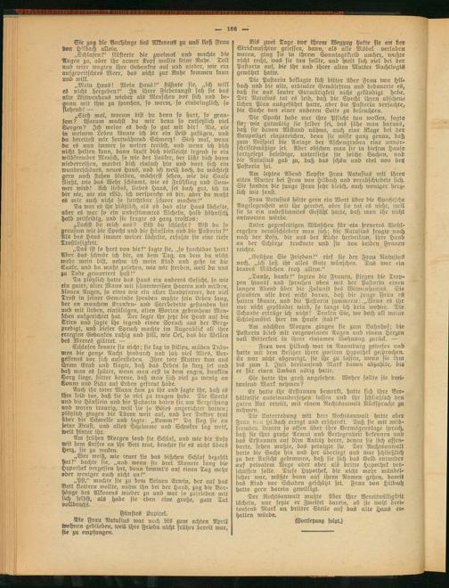 Am nächsten Morgen gingen sie zum Bahnhof; die Pastorin blieb mit rotgeweinten Augen und einem Herzen voll Bitterkeit in ihrer einsamen Wohnung zurück. —