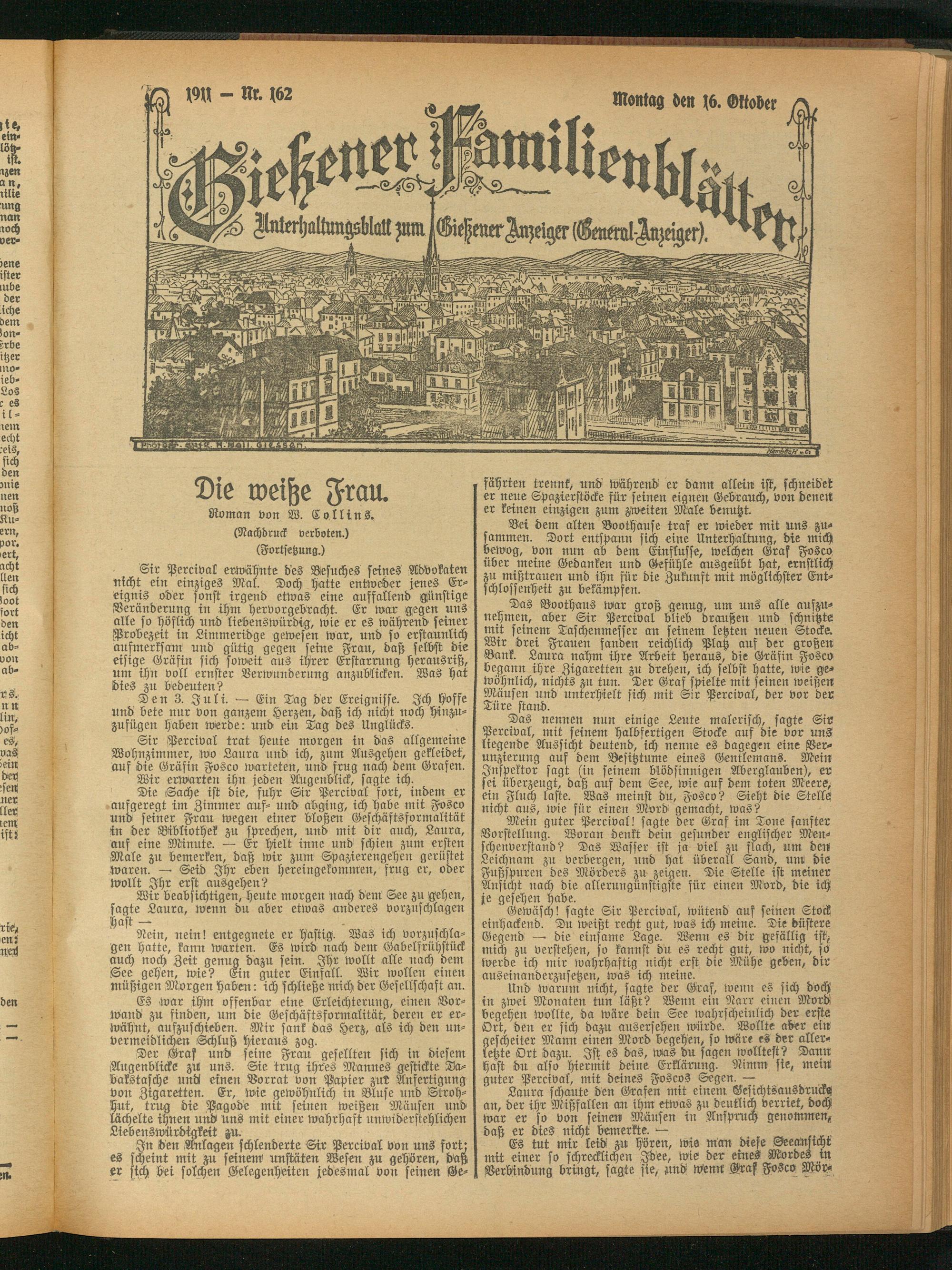 Bei dem alten Boothäuse traf er wieder mit uns zusammen. Dort entspann sich eine Unterhaltung, die mich bewog, von nun ab dem Einflüsse, welchen Graf Fosco über meine Gedanken und Gefühle ausgeübt hat, ernstlich zu mißtrauen und ihn für die Zukrmft mit möglichster Entschlossenheit zu bekämpfen.
