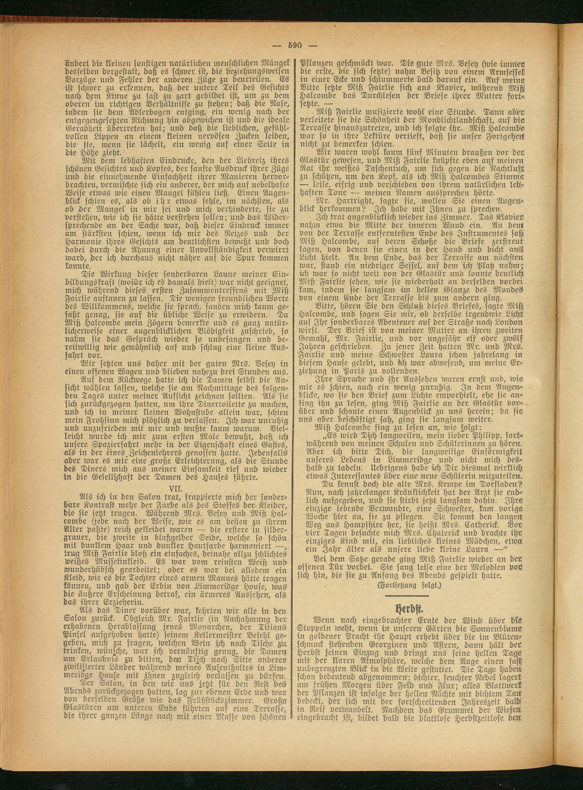„Es wird Dich langweilen, mein lieber Philipp, fortwährend von meinen Schulen und Schülerinnen zu hören. Aber ich bitte Dich, die langweilige Einförmigkeit unseres Lebens in Limmeridge und nicht mich deshalb zu tadeln. Uebrigens habe ich Dir diesmal wirklich -etwas Interessantes über -eine neue Schülerin mitzuteilen.