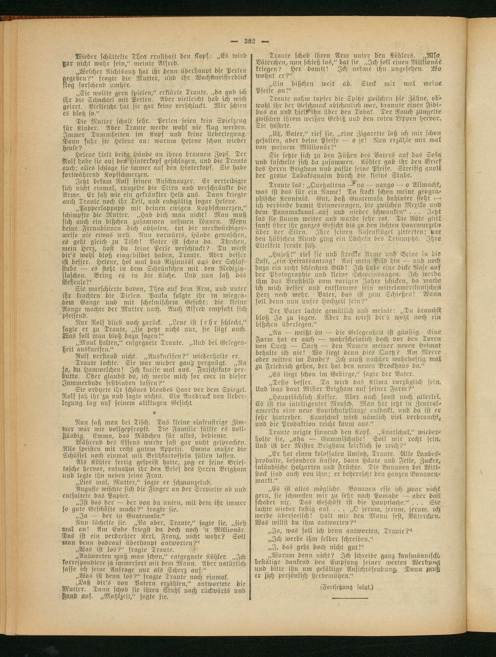 „"Er hat einen kolossalen Umsatz, Traute. Alle Landcs'- 'prodükte, besonders Kaffee, dann Haute, und Felle, Zucker, inländische Holzarten und Früchte. Die Bananen bei Witt- stock sind auch von ihm; er beherrscht den ganzen Baiianeu- markt."