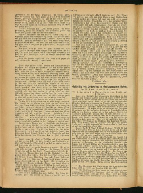 An die Stelle des Großh. Ober-Postamts, das bereitsj feit dem Amtsantritte des Ober-Postmeisters Psaltz (1863) *) und bet gleichzeitig erfolgten Umwandlung der bisherigen Ober-Postamts- expedition in Darmstadt in ein selbständiges Postamt unter Leitung des Postrats Müller als Verwaltungsbehörde vvm Betriebsdienste getrennt worden war, , trat eine Kgl. Preußische Ober-Postdirektion. Dieser wurde die gesamte Verwaltung des Postwesens in Hessen, das int Frieden vom 3. September 1866 die heutigen Grenzen erhalten hatte, unterstellt. Die Leitung der Ober-Postdirektion übernahm der Ober-Postdirektor von Vahl**)< Psaltz erhielt am 1. Juli 1867 die Vorsteherstelle beim Postamt 1 in Darmstadt u. wurde am 1. März 1868 zum Postdirektor ernannt. Tie Tienstgeschäfte der seit 1807 bestehenden Großh. Ober-Post- inspektion übernahm eine Großh. Kommission für Postangelegenheiten, die bis 1875 bestand. Ebenso wie die Ober-Postinfpektiont
