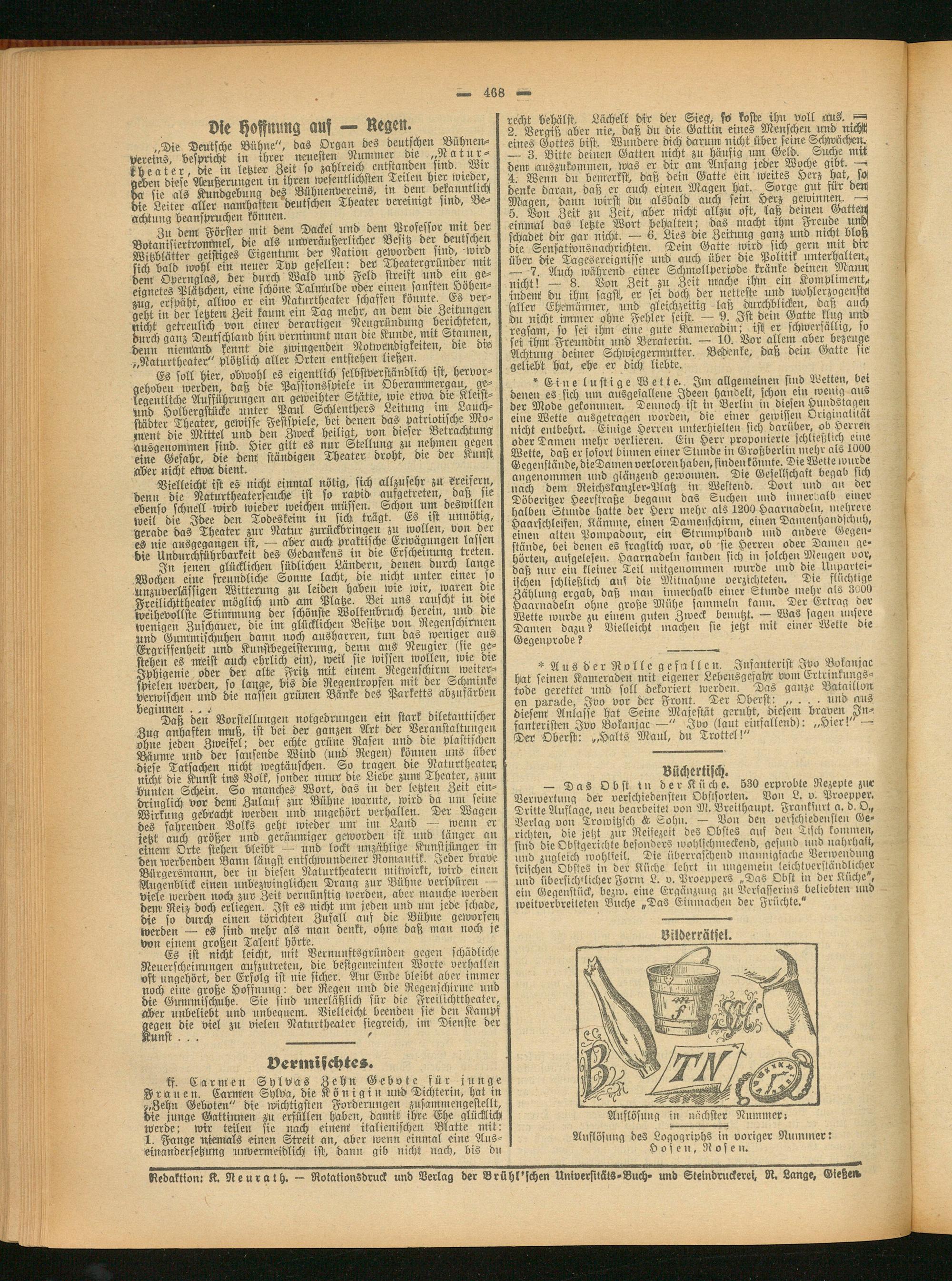 Redaktion: K. Neurath. — Rotationsdruck und Verlag der Brühl'schen Universitäts-Buch- und Steindnlckereh R. Lange, Gieße»