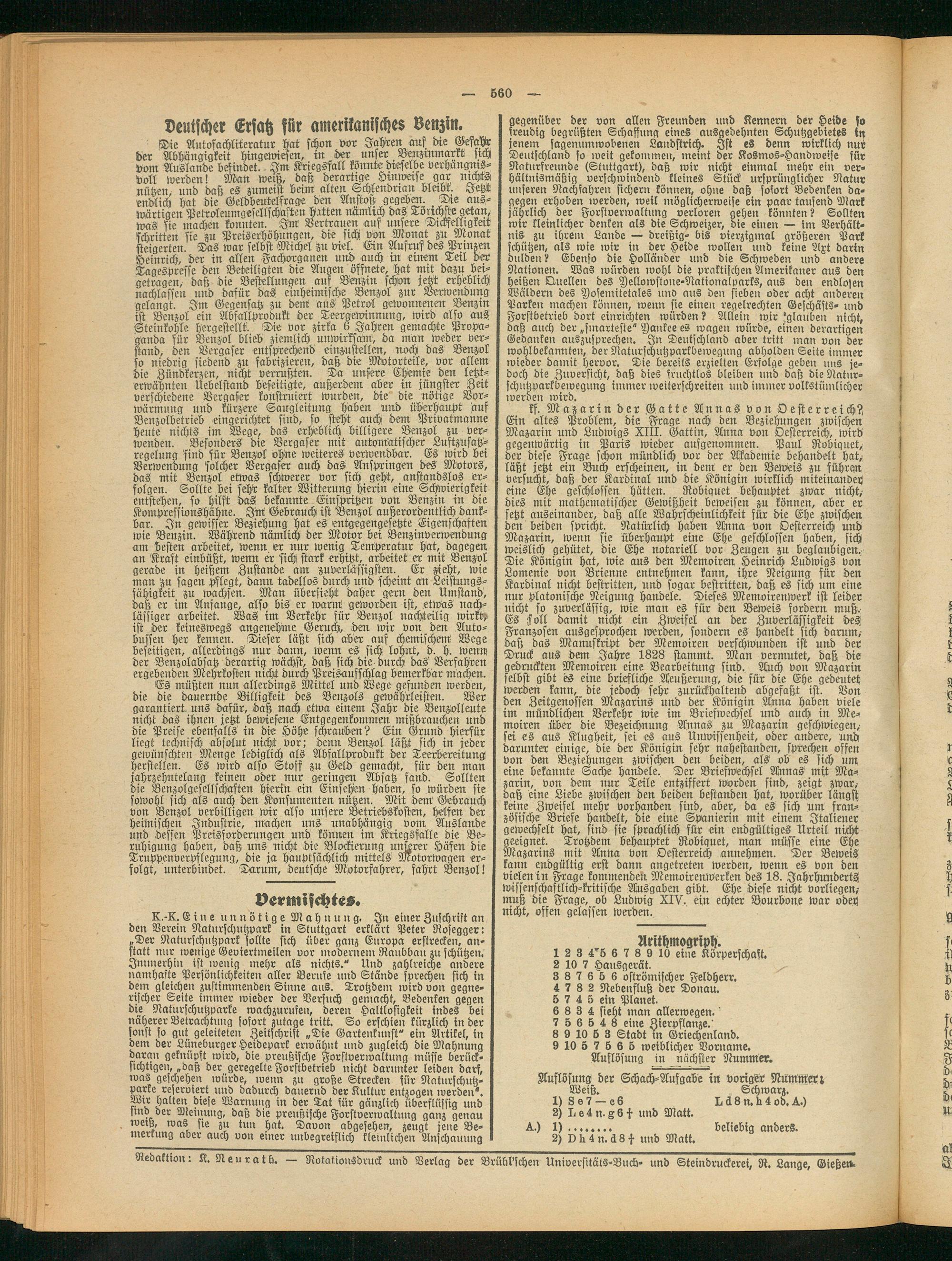 Redaktion: K. Aeuratb. — Rotationsdruck und Verlag der Brübl'schen Universitäts-Buch- und Steindruckerei, R. Lange, Gießer».