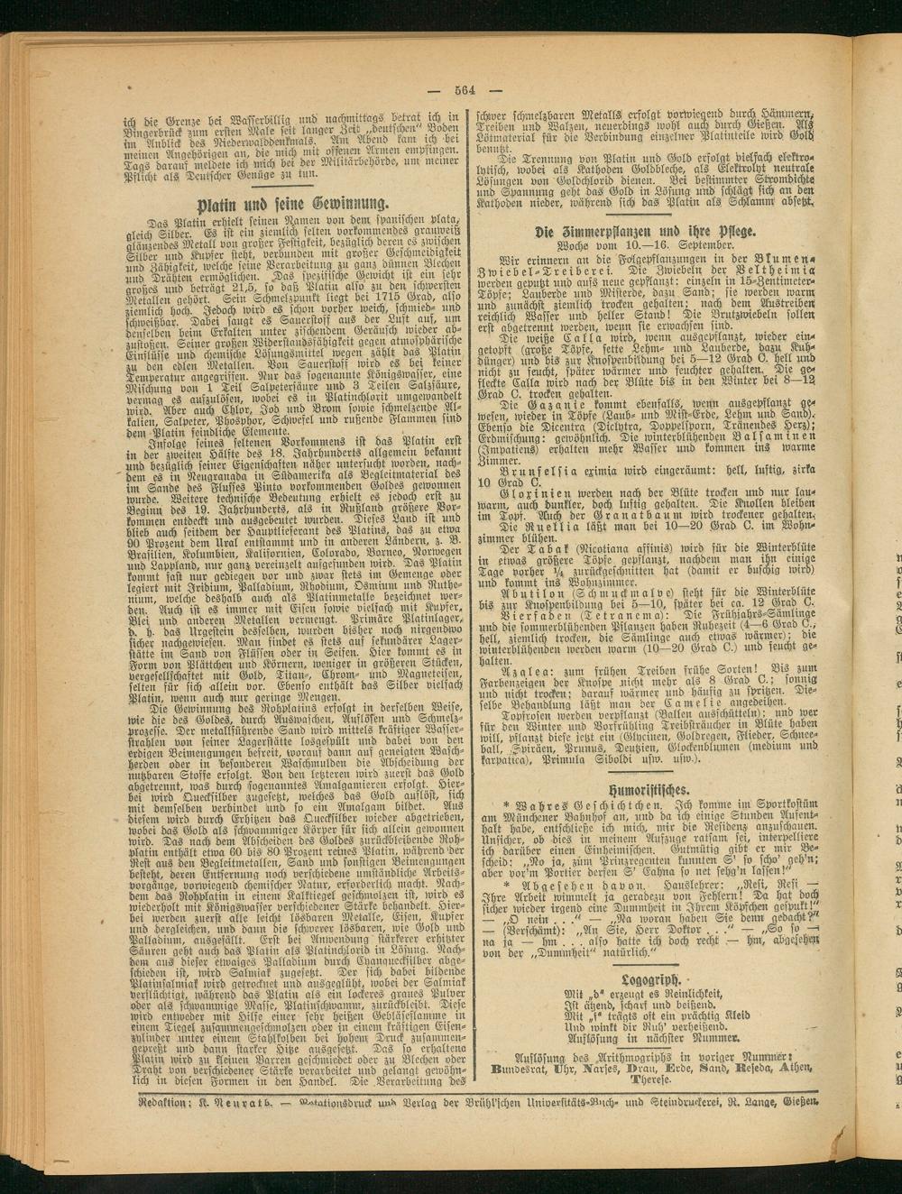 Redaktion: K- Neuratb. — W^stionsdruck u»^ Verlag der Brüh Ischen Universitäts-Bach» und Stemdruekerei, R. Lange, Gießen,