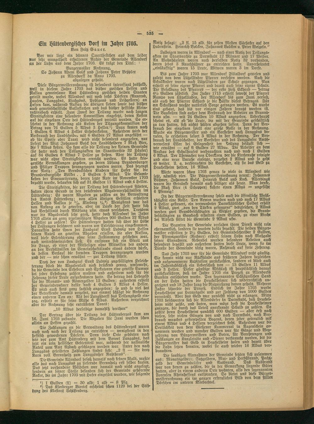 Vor mir liegt ein dünnes Quartheftchen aus dem leider Nur sehr mangelhaft erhaltenen Archiv der Gemeinde Allendors an der Lahn aus dem' Jahre 1703. Es trägt den Titel: > Bürgermeister Rechnung,