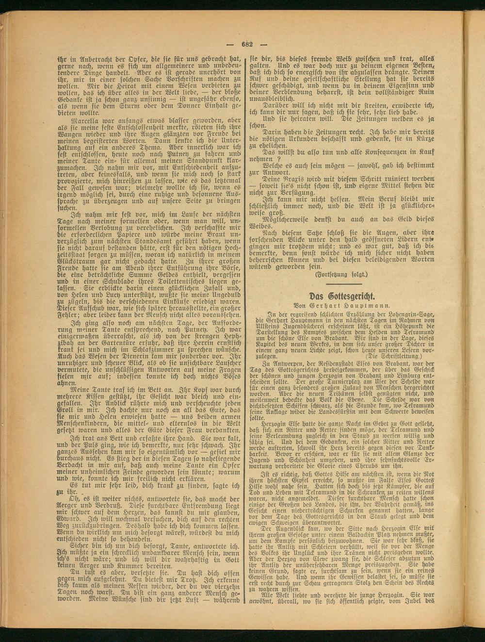 In der ergreifend schlichten Erzählung der Lohengrin-Sage, die Gerhart Hauptmann in den nächsten Tagen im Rahmen von Ullsteins Jugendbüchern erscheinen läßt, ist ein Höhepunkt die Darstellung des Kampfes zwischen deni Helden und Telramund um die schöne Else von Brabant. Wir sind in der Lage, dieses Kapitel des neuen Werkes, in dem sich unser großer Dichter in einem- ganz- neuen Lichte zeigt, schon heute unseren Lesern vorzulegen. (Die Schriftleitung.)