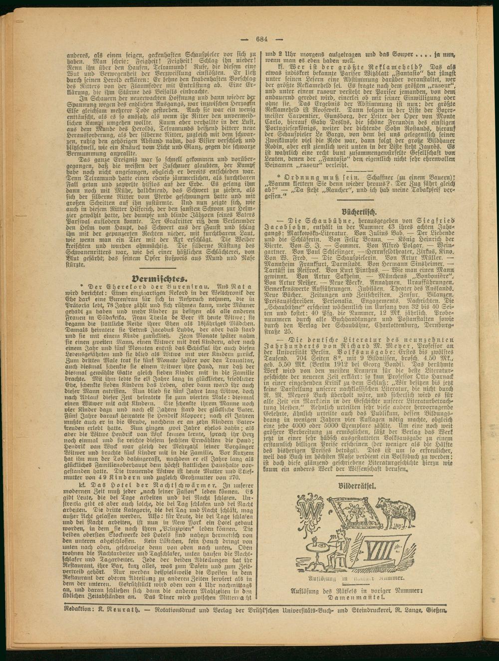 Redaktion: K. Neurath. — Rotationsdruck und Verlag der Brühl'fchen Universitäts-Buch- und Stemdruckerei, R. Lange, Gießen