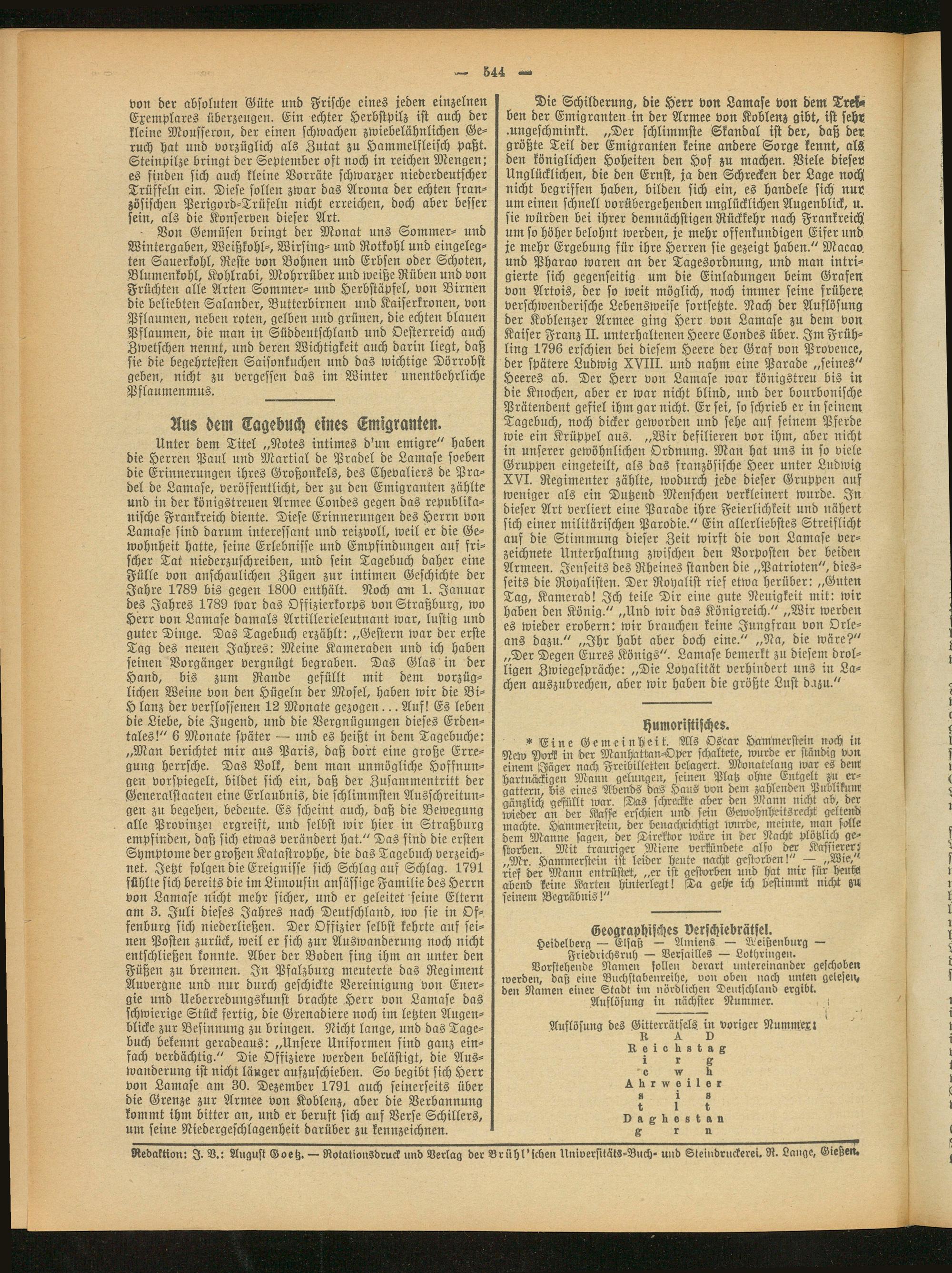 Redaktion: I. V.: August Goetz. — Rotationsdruck und Verlag der Brühl'schen NniversitätS-Buch- und Steindruckerei. R. Lange, Gießen.