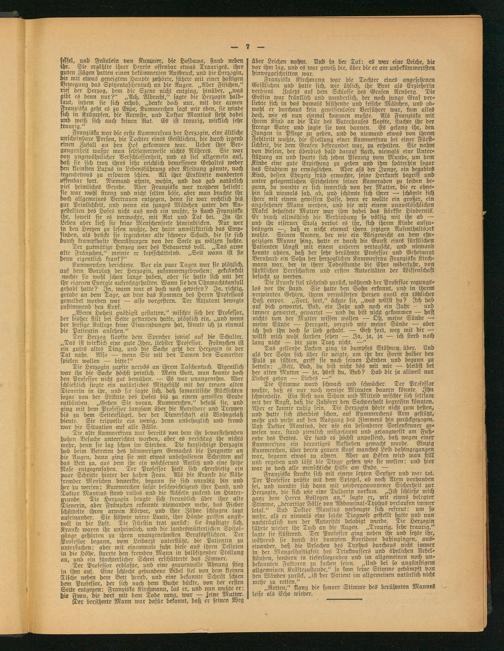 Der Herzog klopfte dem Sprecher jovial ans die Schulter. „Das ist wirklich eine gute Idee, liebster Professor. Fvänzchm ist ein gutes altes Ting, und die Sache geht der Herzogin in der Tat nahe. Mso — wenn Sie mit dm Damm den Samariter spielen wollm — Bitte!"