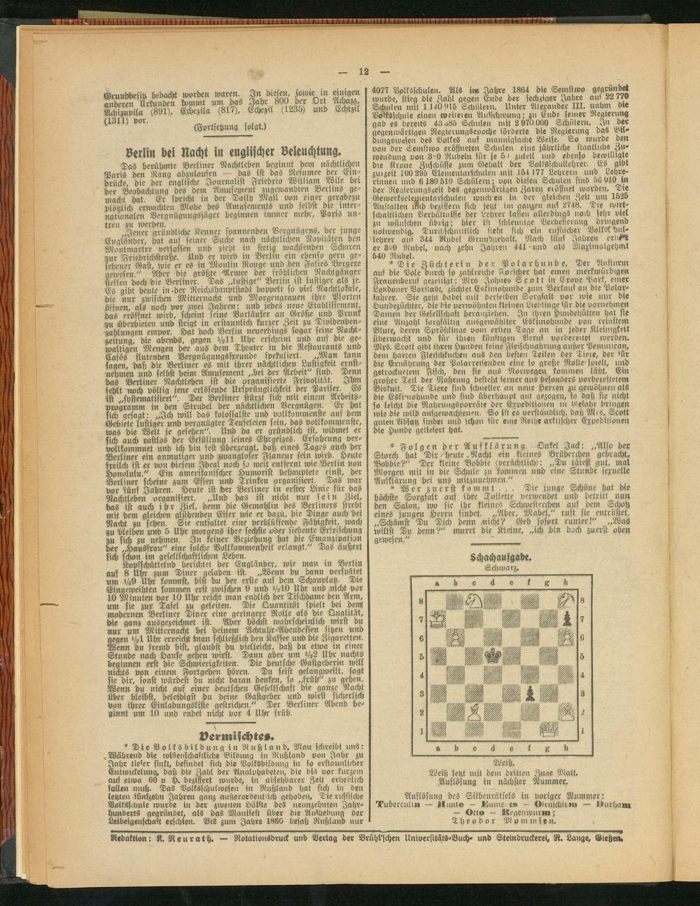 Redaktion: K. Neurath. — Rotationsdruck und Verlag der Brühl'schen Universitäts-Buch- und Steindruckerei, R. Lange, Gießen.