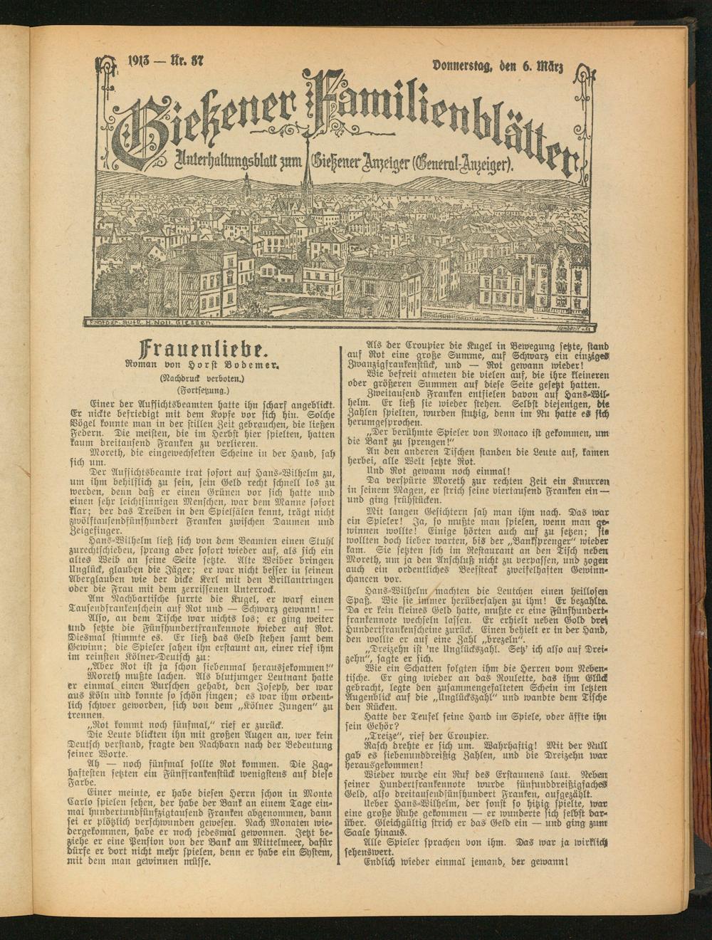 Der Aufsichtsbeamte trat sofort auf Hans-Wilhelm zu, um ihm behilflich zu sein, sein Geld recht schnell los zu werden, denn daß er einen Grünen vor sich hatte und einen sehr leichtsinnigen Menschen, war dem Manne sofort klar; der das Treiben in den Spielsälen kennt, trägt nicht Kwölftausendfünshundert Franken zwischen Daumen und Zeigefinger.