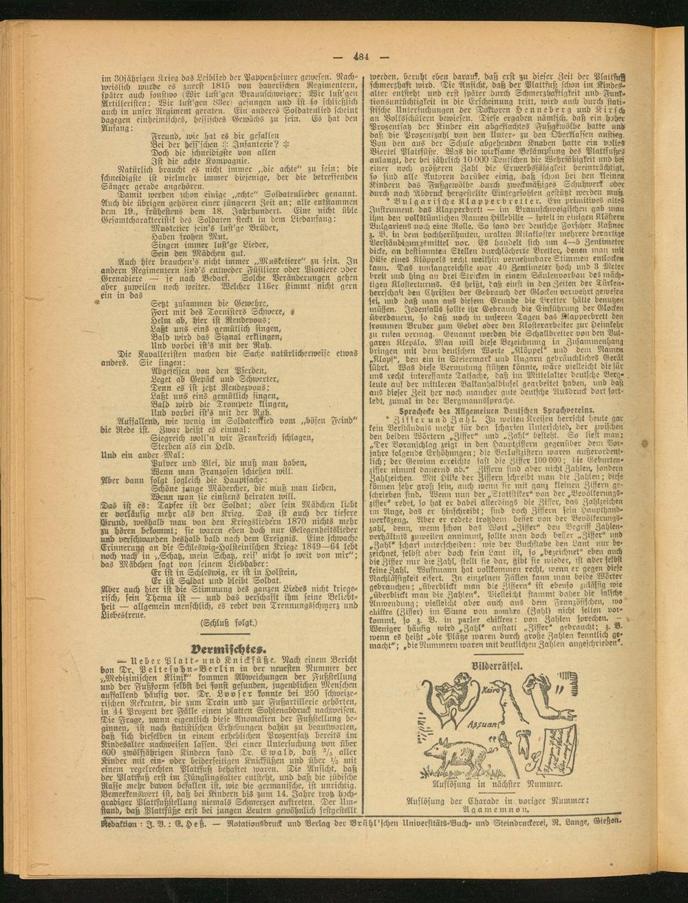 istedaktion : I. B.: E. Heß. — Rotationsdruck und Verlag der Brühl'schen Universitäts-Buch» und Steindruckerei, R. Lange, Gießen.