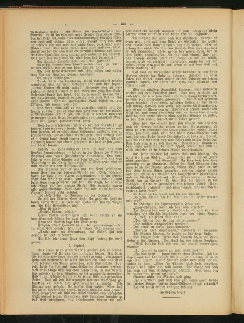Er gab der Mutter einen Kuß. Da geht ein Fröstelit durch ihren Leib, sie sieht den Sohn nut starren Augen an. So küßt Kindesliebe nicht.