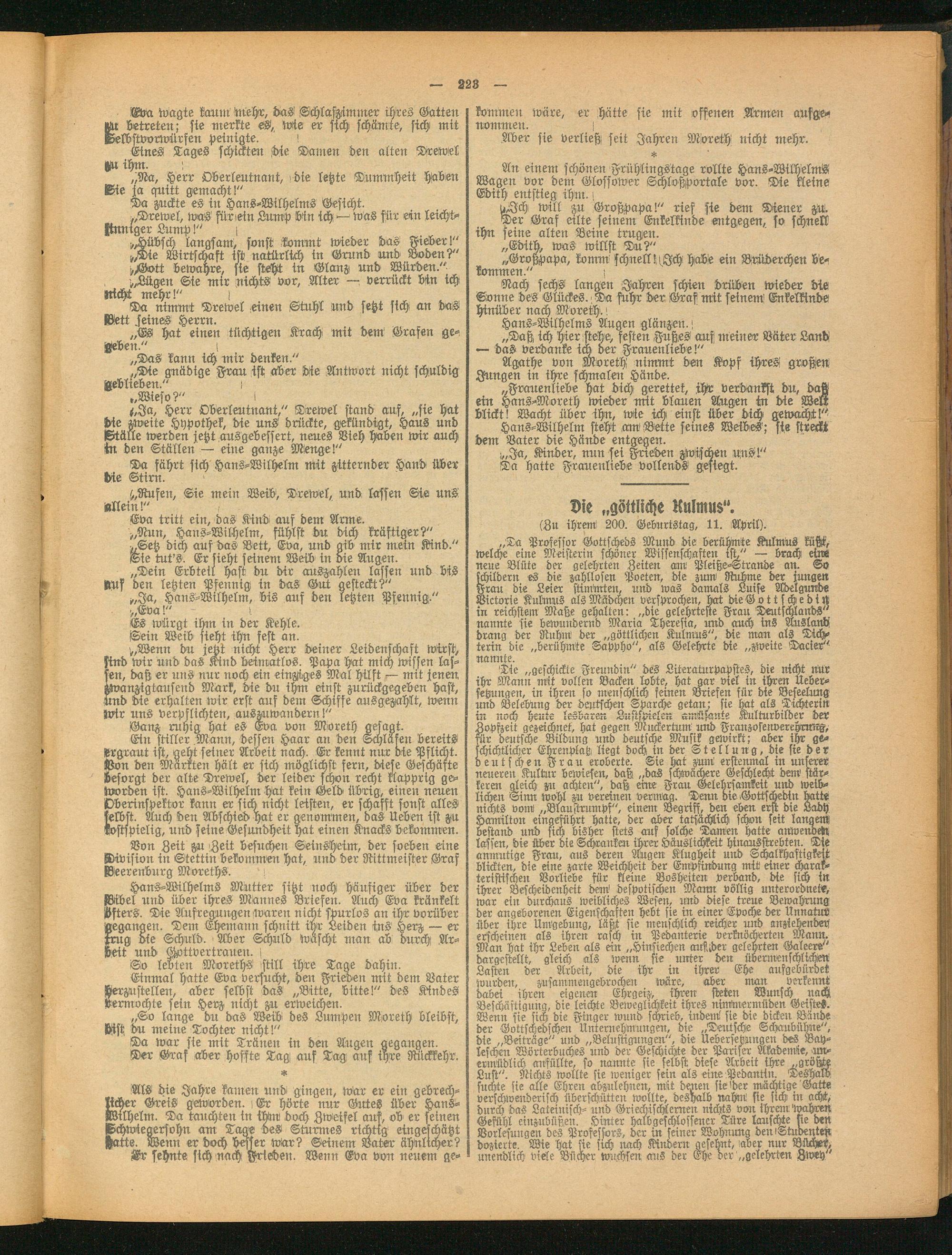 Nach sechs langen Jahren schien drüben wieder dis Sonne des Glückes.' Da fuhr der Graf mit feinem' Enkelkinds hinüber nach Moreth!. t