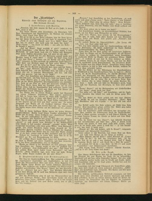 „R-o, do kimmt der nau Jäger!", sagt höhnisch Annelies zu dem Heimkehrenden und fährt fort: „Gelt, d' kannst doach die Noppe nitt gelosse, b’ muß amol Jahd huh! Oawer, woas! wem do die Hoase gucke, wann se daich seh! — Z' läse brauche se nitt, dou tonst ’n doach naut."