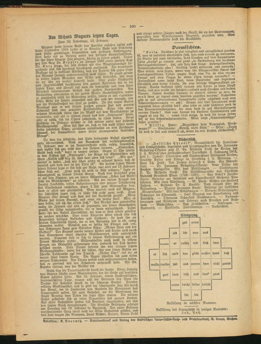 Redaktion: K. Neurath. - Rotationsdruck und Verlag der Brüll',chen Universitäts-Buch-mb Steindruckerei. R. Lange, Gieße».